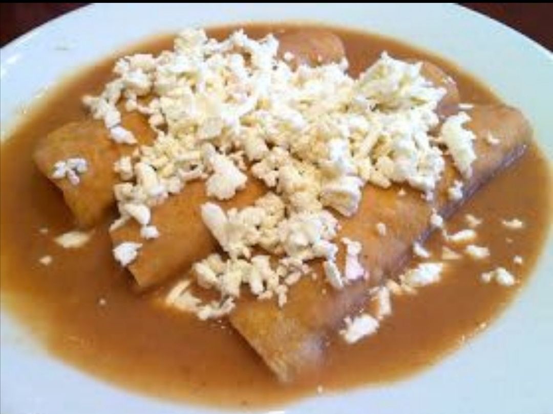 Orden de cuatro deliciosas enchiladas, con pollo deshebrado, crema, queso rallado.