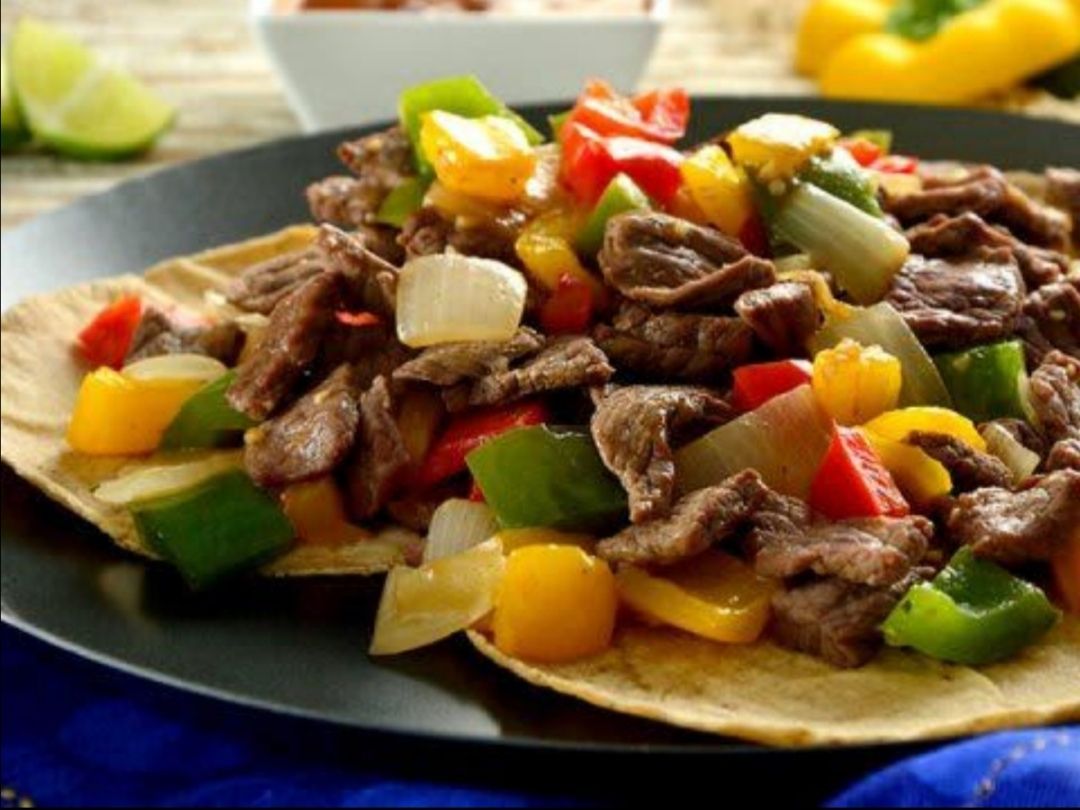 Pimiento, cebolla, bistec, chorizo, nopales y queso fundido.