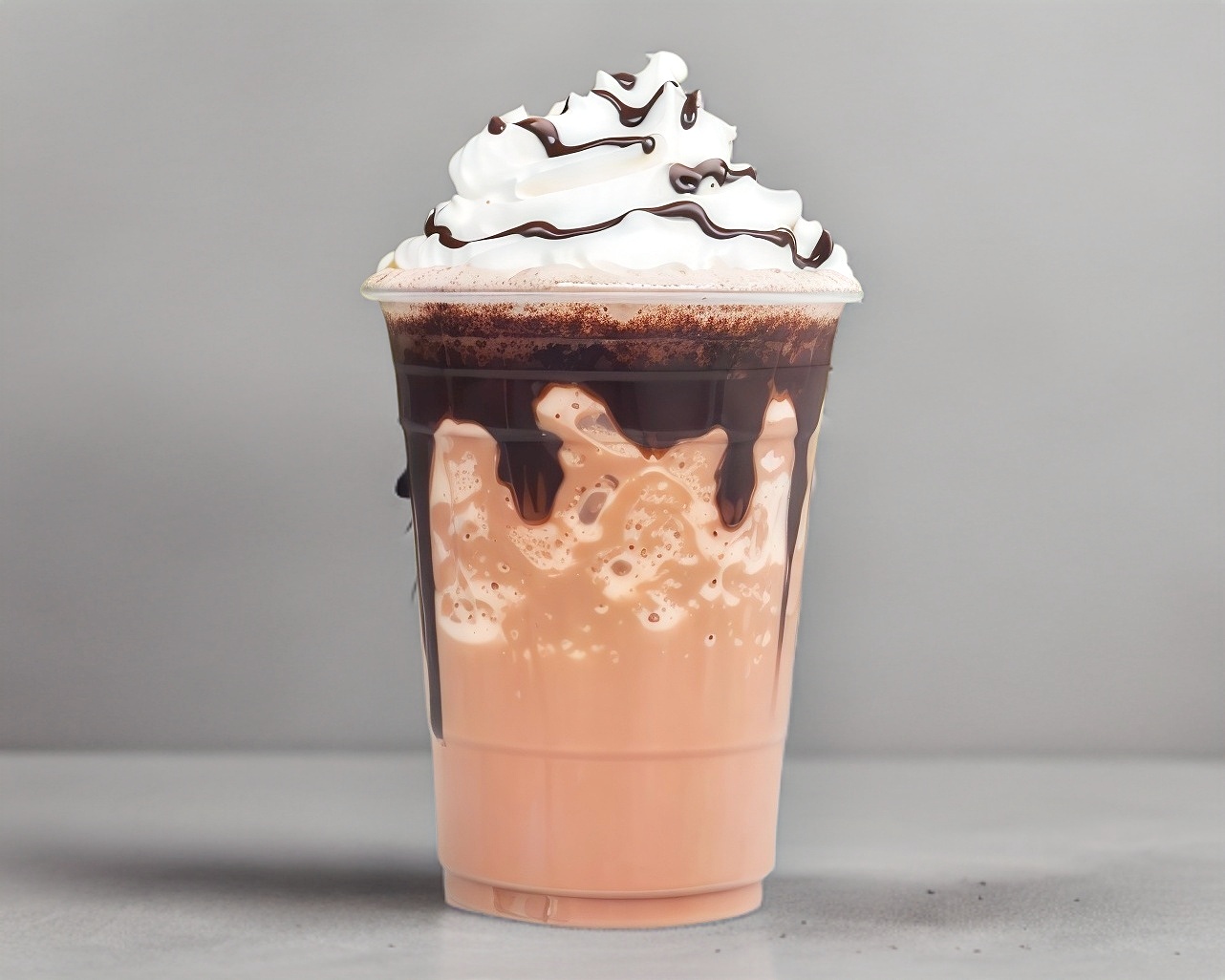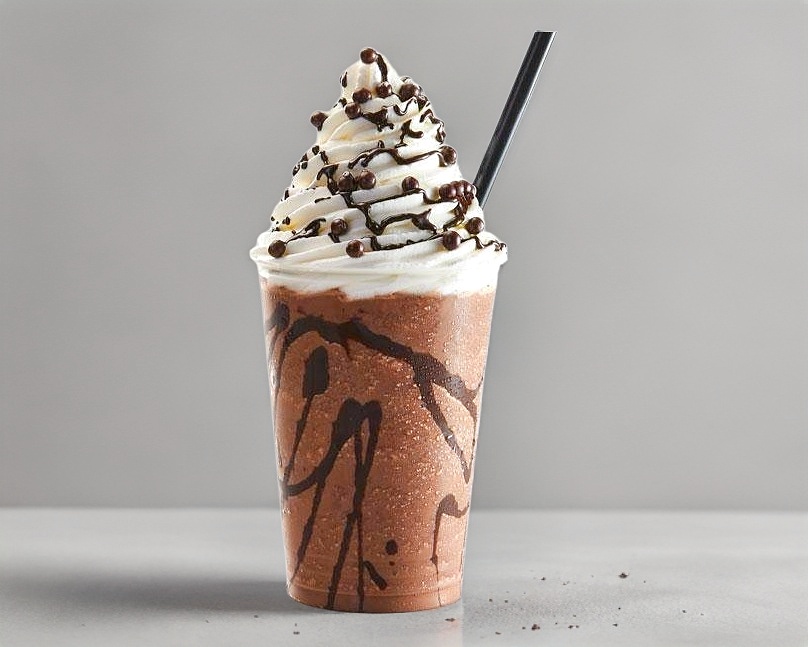 Bebida frappeada de 16oz sabor Chocolate, a base de leche y decorada con crema batida, cereza y barquillo de chocolate.