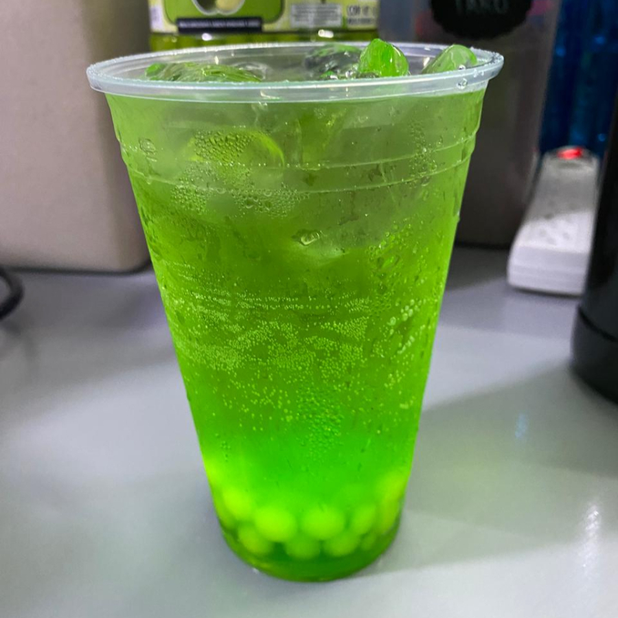 16oz de bebida sabor Manzana Verde con agua mineral, perlas explosivas y hielos