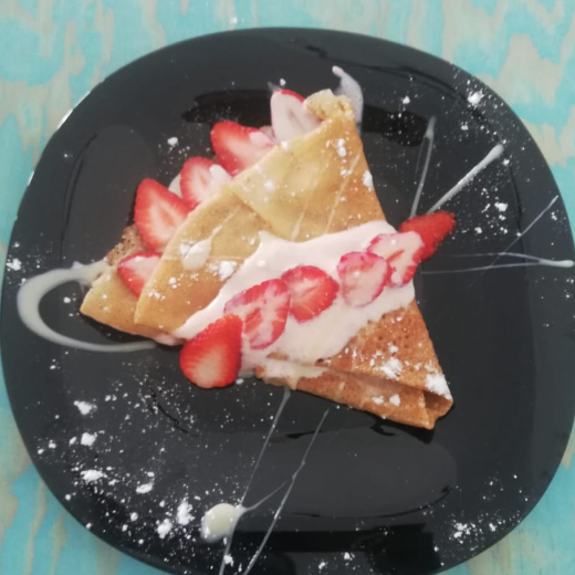 Ofrece el sabor de una pizza dentro de una crepa preparada con jamón, piña y queso manchego gratinado.