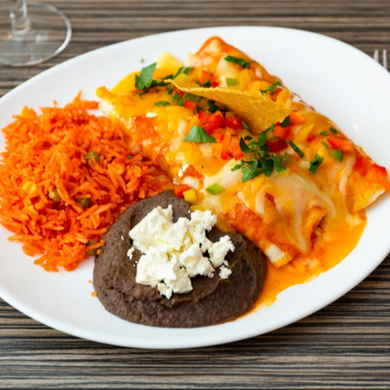 De pollo o queso panela, gratinadas con manchego, queso y cebolla morada.
