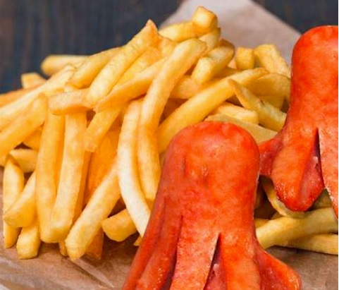 Salchicha bañada en salsa chilli