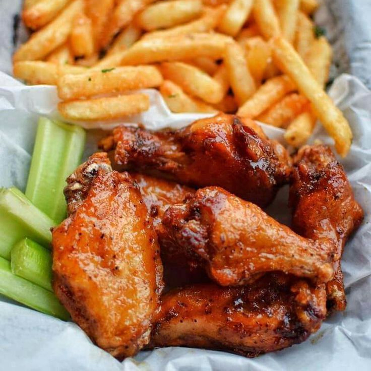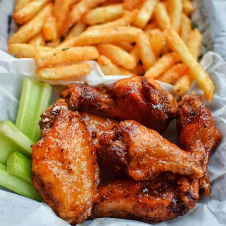 6 jugosas alitas de pollo, doradas a la perfección bañadas en nuestra deliciosa salsa. Acompañadas de una generosa porción de nuestras papas a la francesa crujientes.