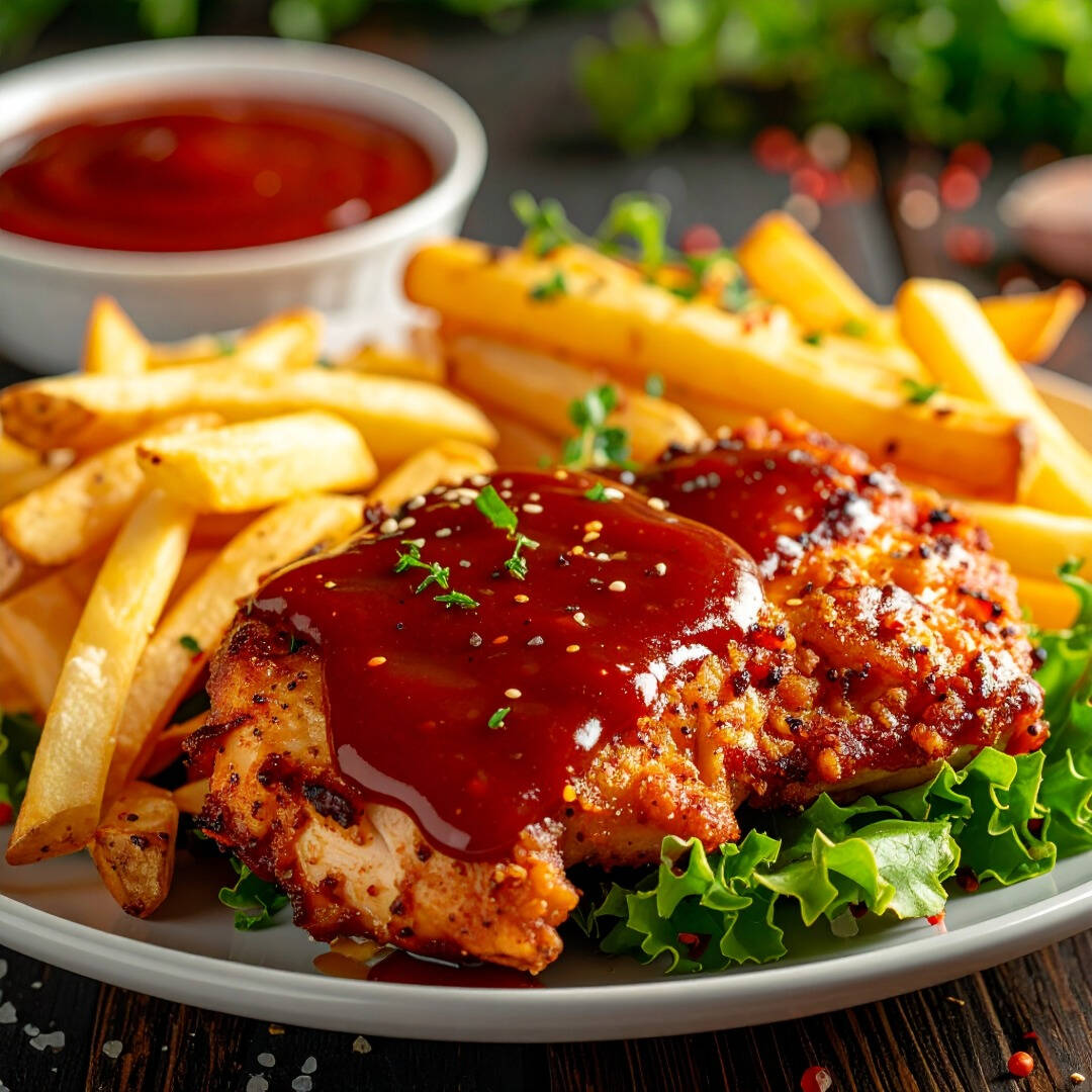 Tiernos bocados de pechuga de pollo con un empanizado dorado y crujiente, perfectos para dipear y acompañados de nuestras clásicas papas a la francesa.