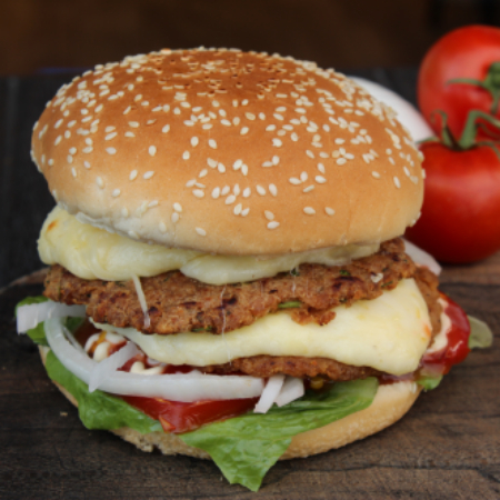Lleva doble carne de res o pollo, lechuga, cebolla, jitomate, jalapeño, mostaza, cátsup y queso mozzarella.