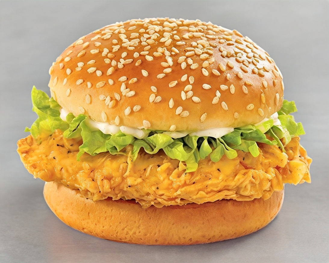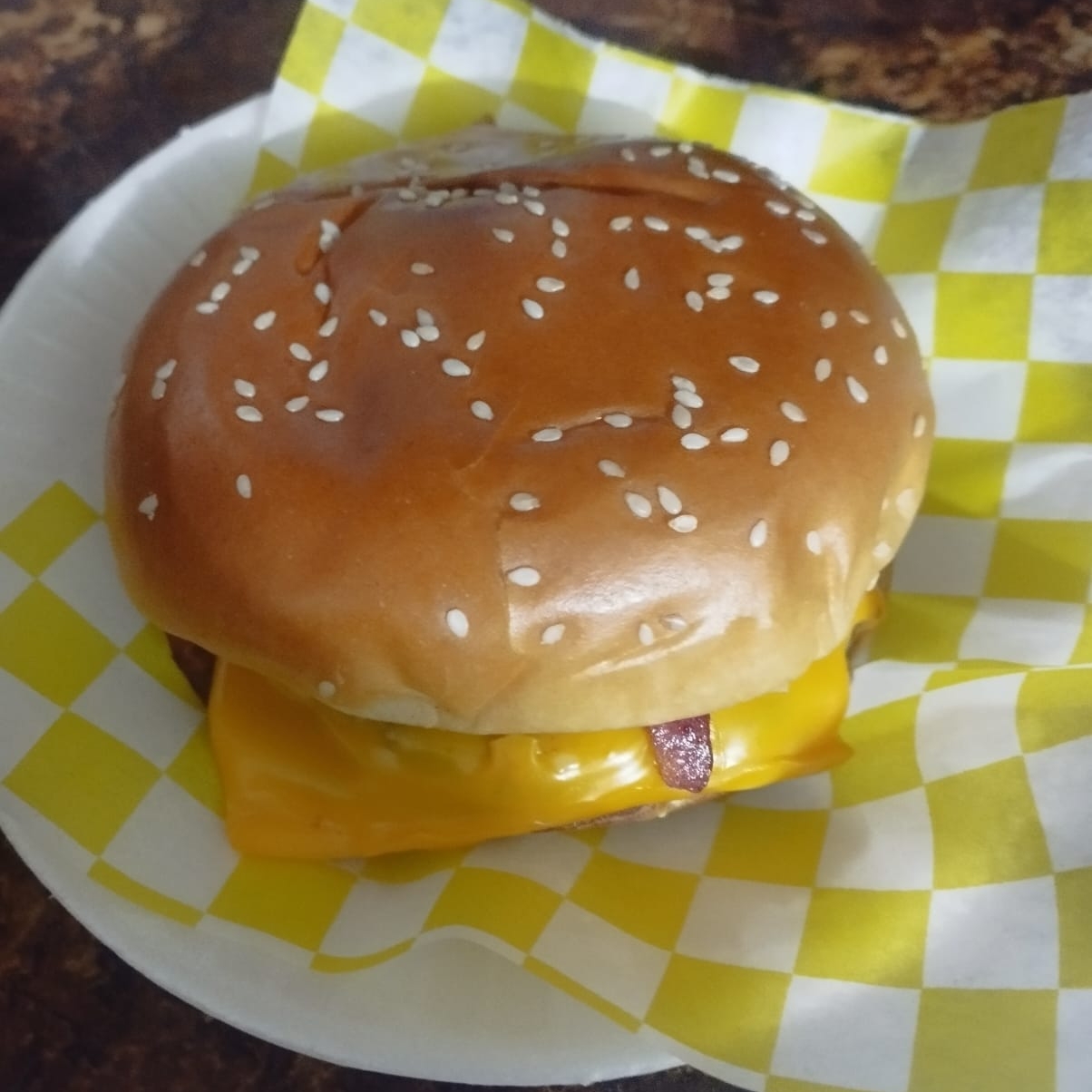 Hamburguesa de tender de pollo con jamón ,queso tipo americano y queso Oaxaca