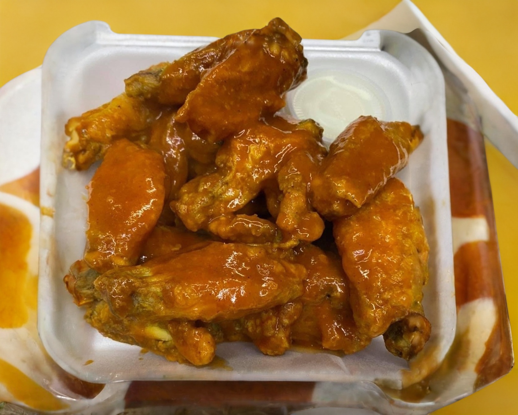 6 piezas de Alitas, salsa a elegir, acompañadas de una porción de papas a la francesa (150 gramos)