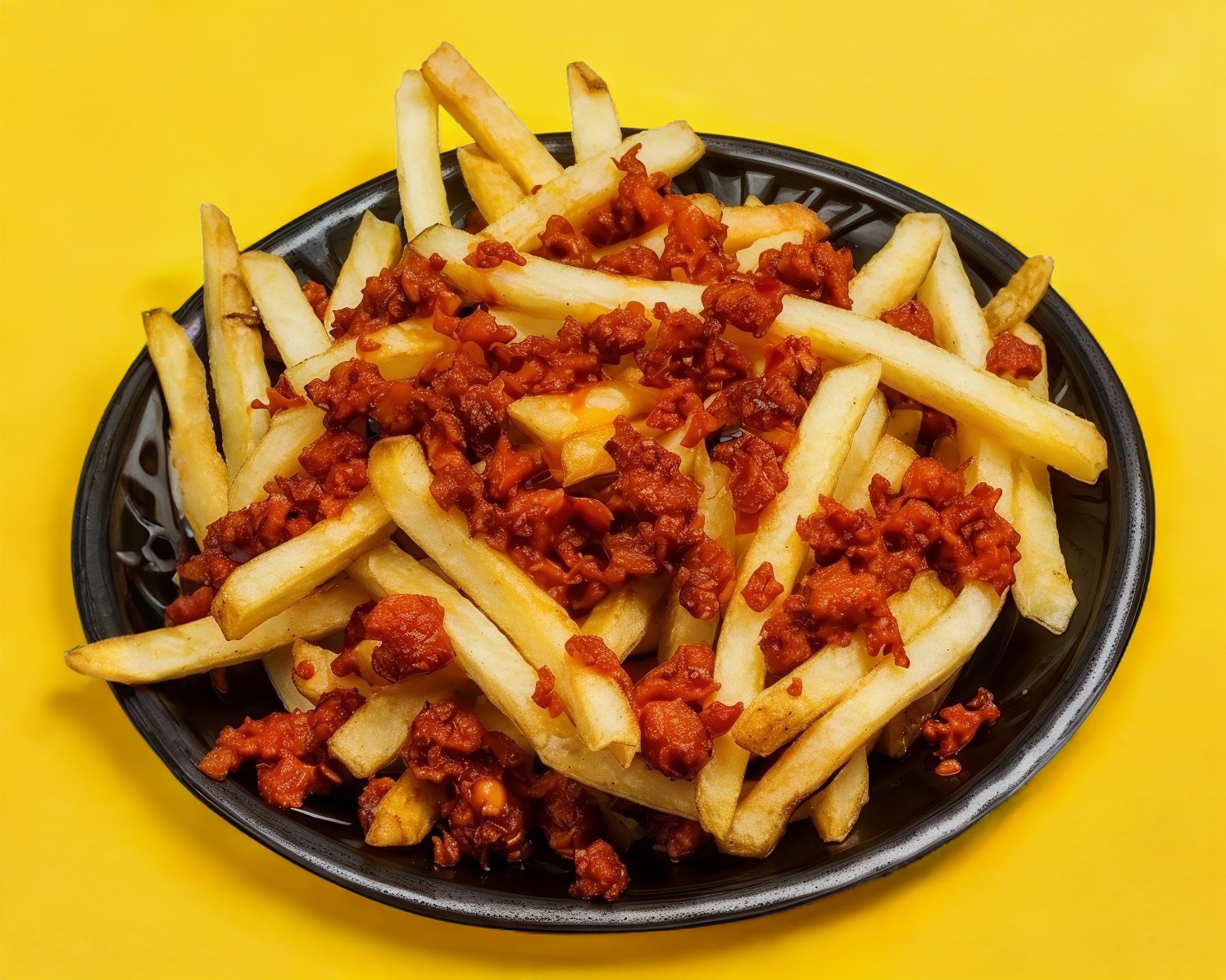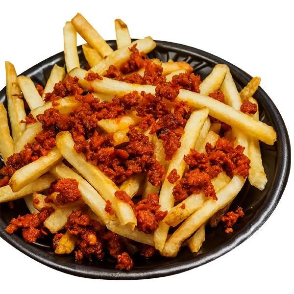 Papas a la francesa,bañadas en salsa de tu elección, gratinadas con queso