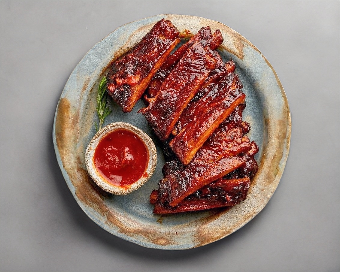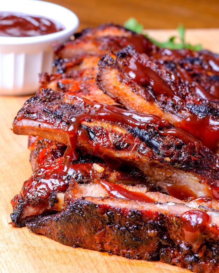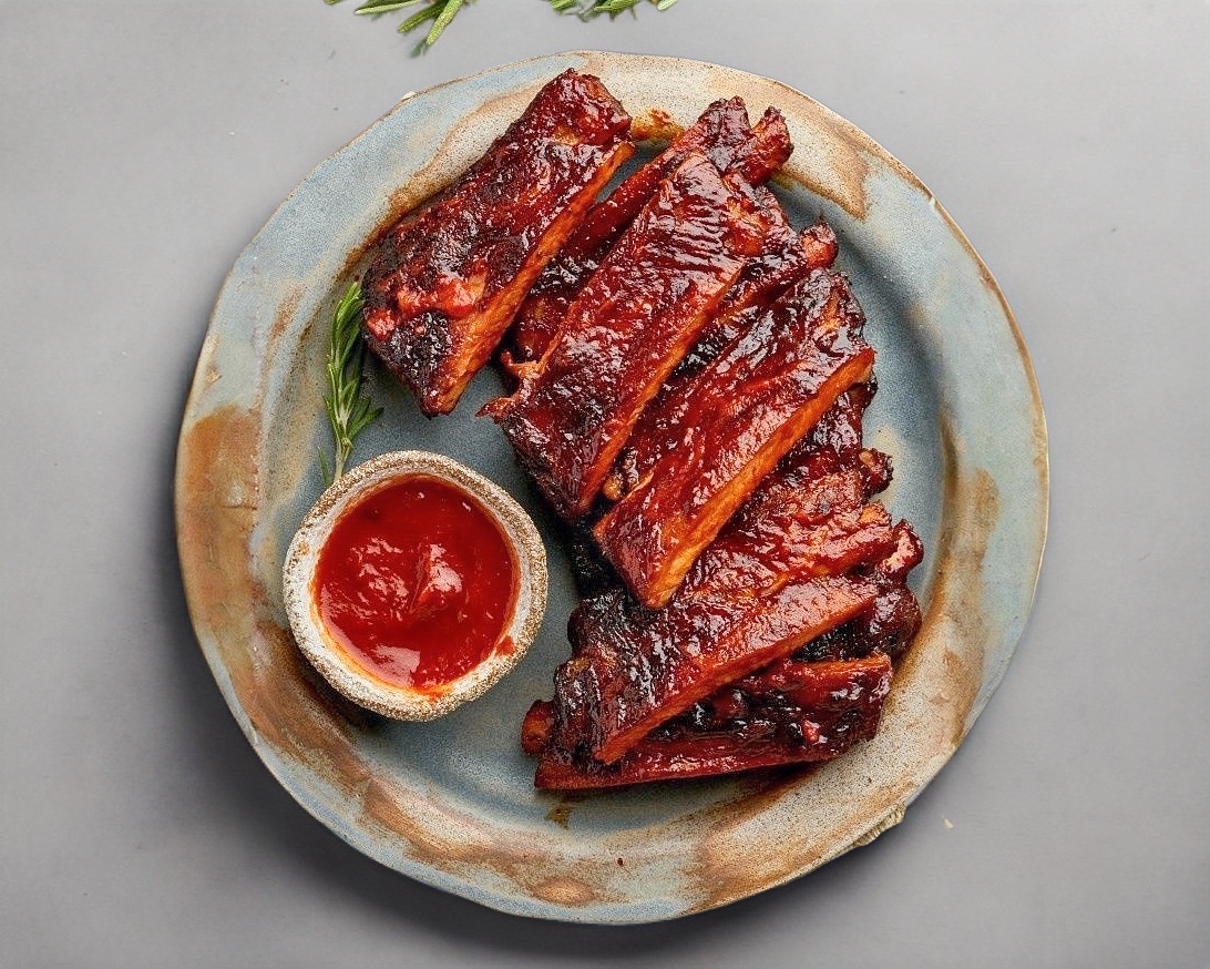 Costillas al carbón bañadas en el aderezo de tu elección.
