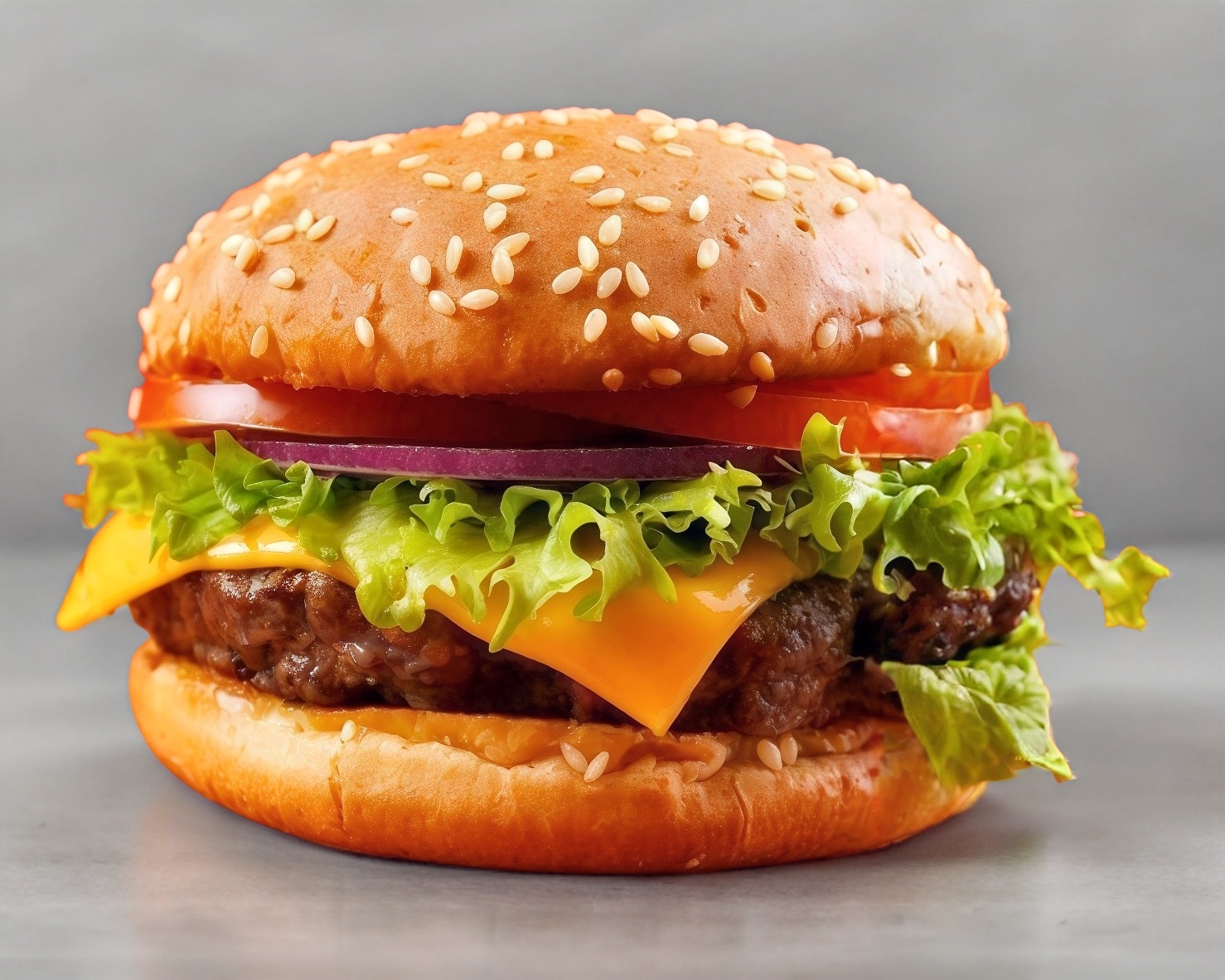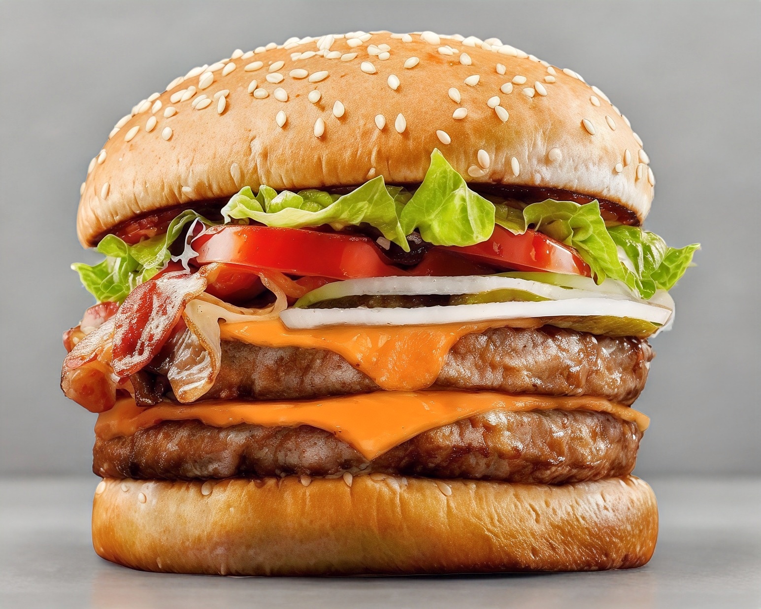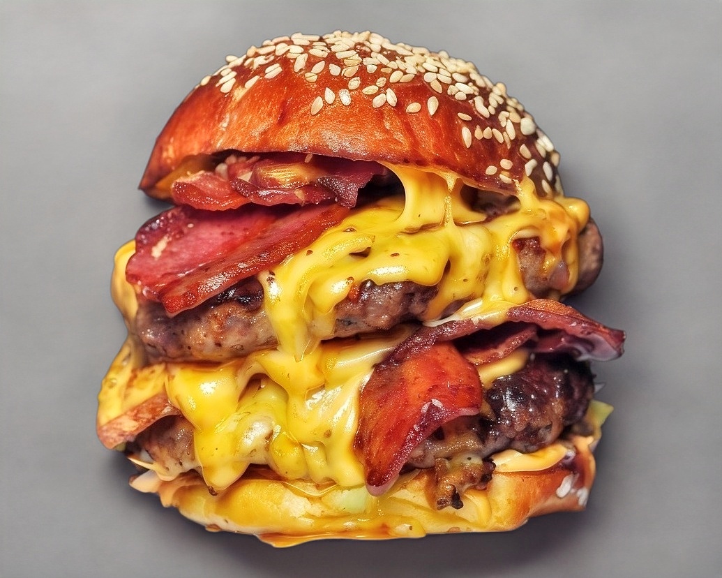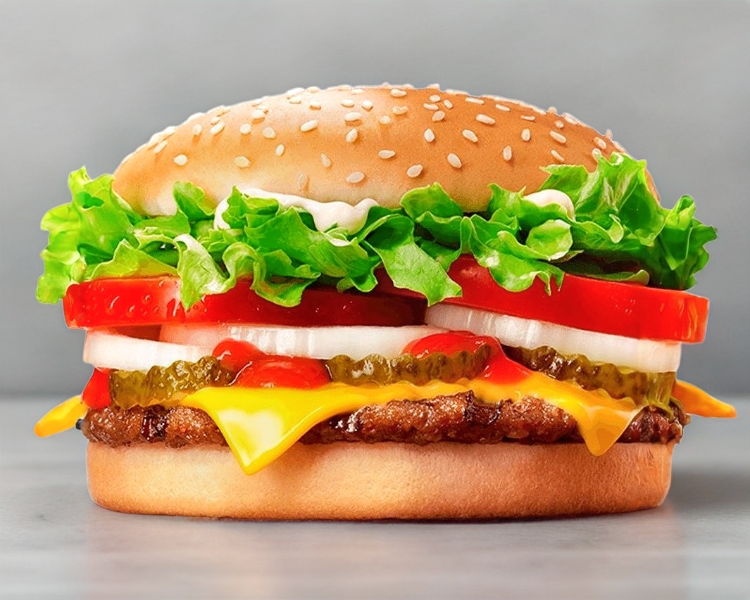 Hamburguesa de tres quesos, Hot Dog Italiano y un litro de agua de sabor embotellada. El sabor puede variar.