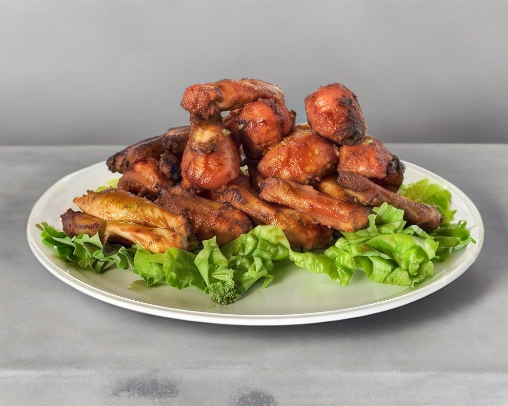 1200 gramos, aproximadamente 30 alitas de pollo bañadas en el aderezo de tu elección.