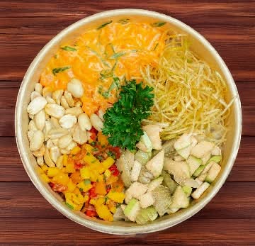 ARROZ SHARI/SPICY TUNA(50 GR), APIO/MANZANA/EDAMAME/SALSA TERIYAKI GLASS, PICO DE PIÑA Y MANGO/CACAHUATE/PORO FRITO Y PEREJIL CON SALSA DE TU ELECCIÒN (CHIPOTLE/SPICY O DIP DE CILANTRO)