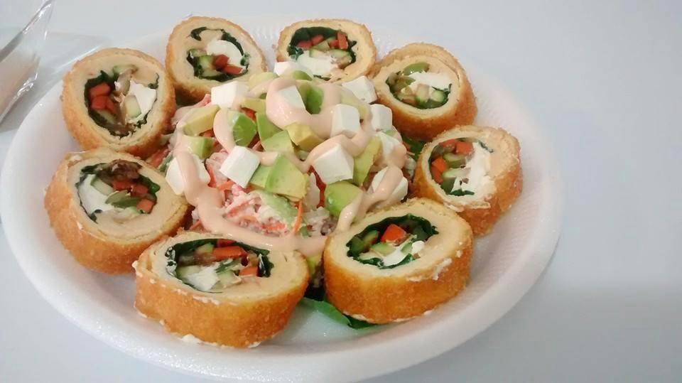XF: Hoja de pepino, Tampico, tropiezos de camarón empanizado y salsa de anguila. XD: Philadelphia, aguacate y Kanikama.
