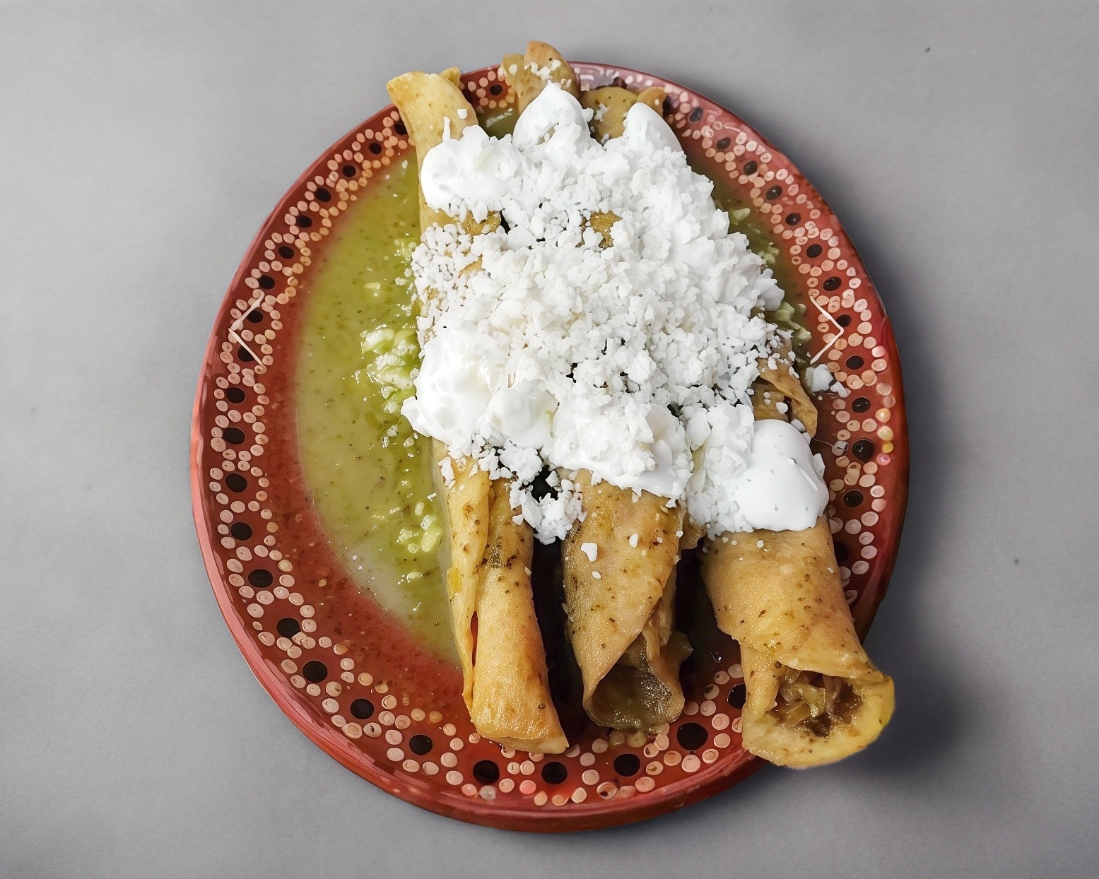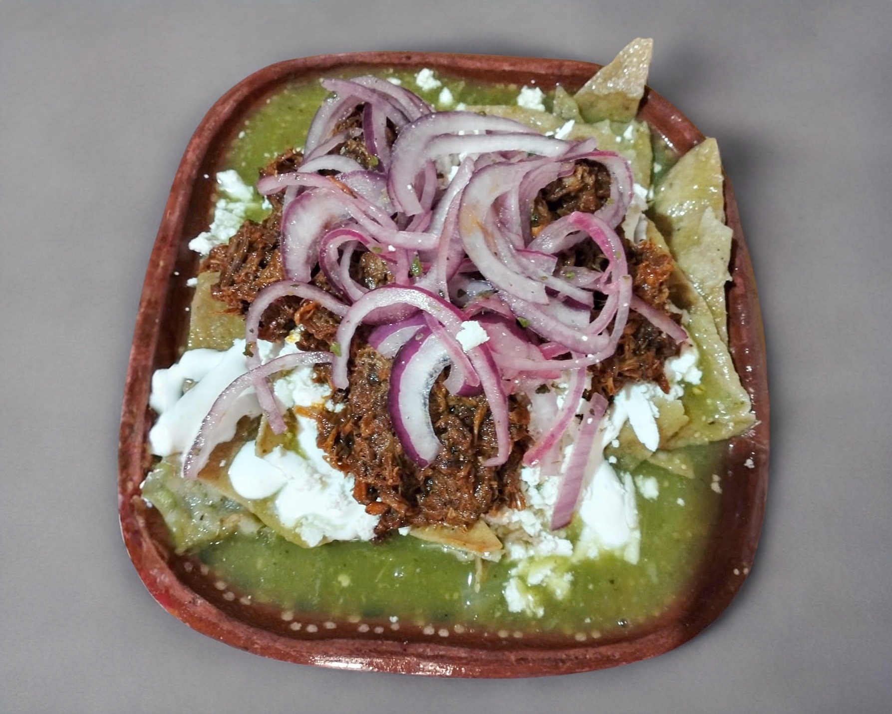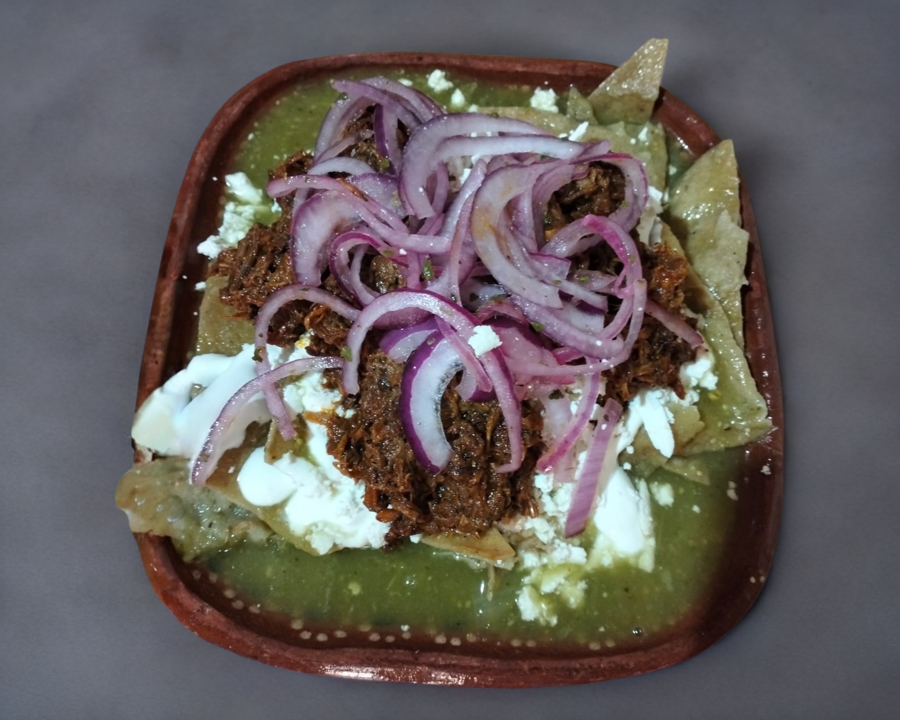 Tortilla de maíz bañados con salsa a elegir, personalizados a tu gusto y con 1 bolillo.