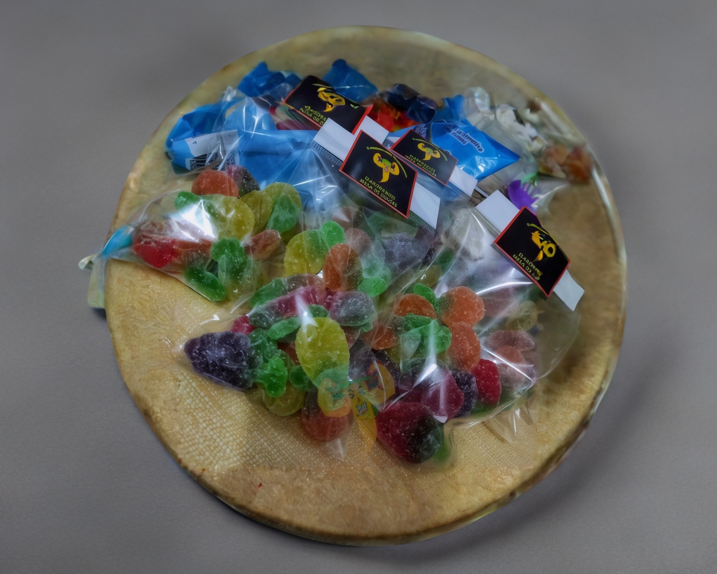 Incluye 100 gramos de Gomitas Frutitas Azucaradas