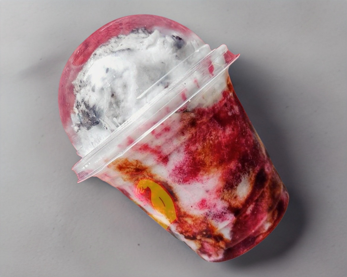 Nieve (sabor a elegir) en vaso de 1/2 litro, gomitas Dientes, gomitas Panditas, chocolate Hershey's.