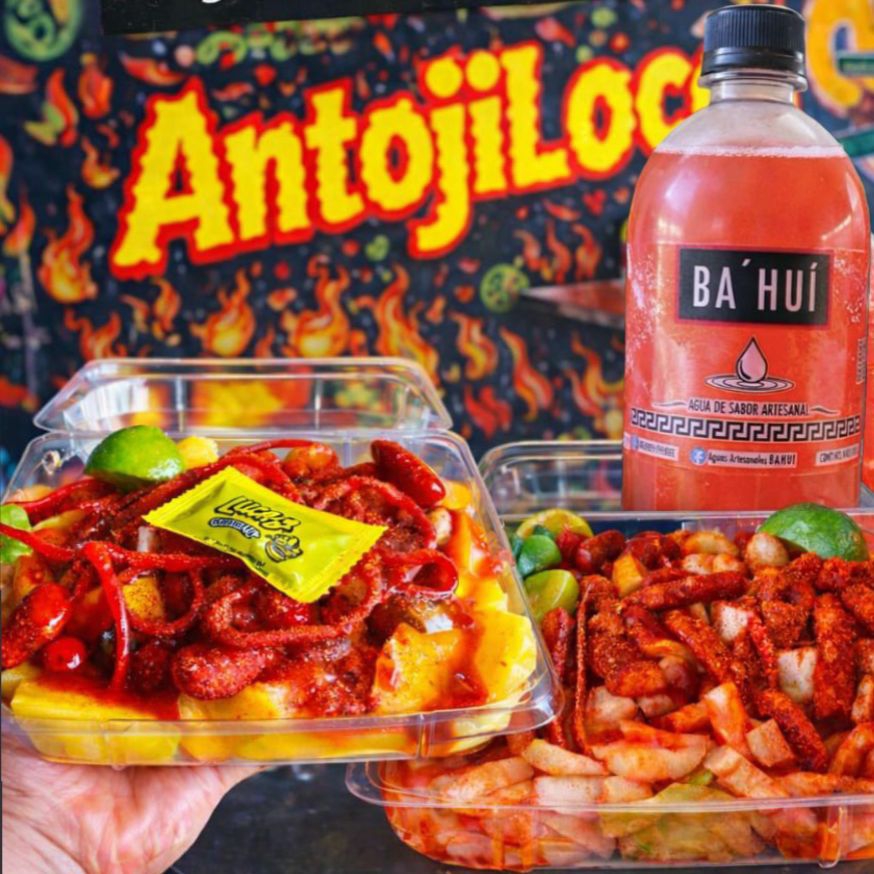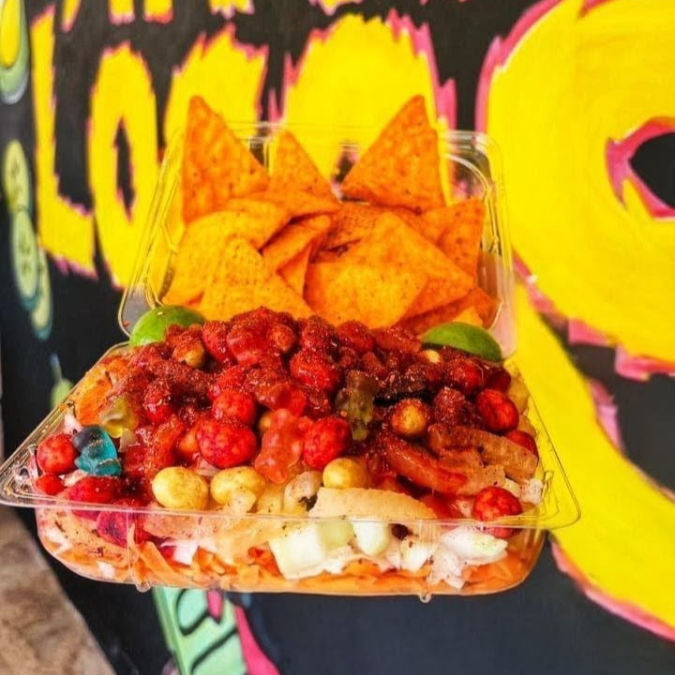 Incluye 1 frutaloca a elegir, 1 papas locas a elegir, 1 gomiboing sencillo sabor a elegir y 1 chamoyada (sandía) o mangada (mango) sencilla a elegir.