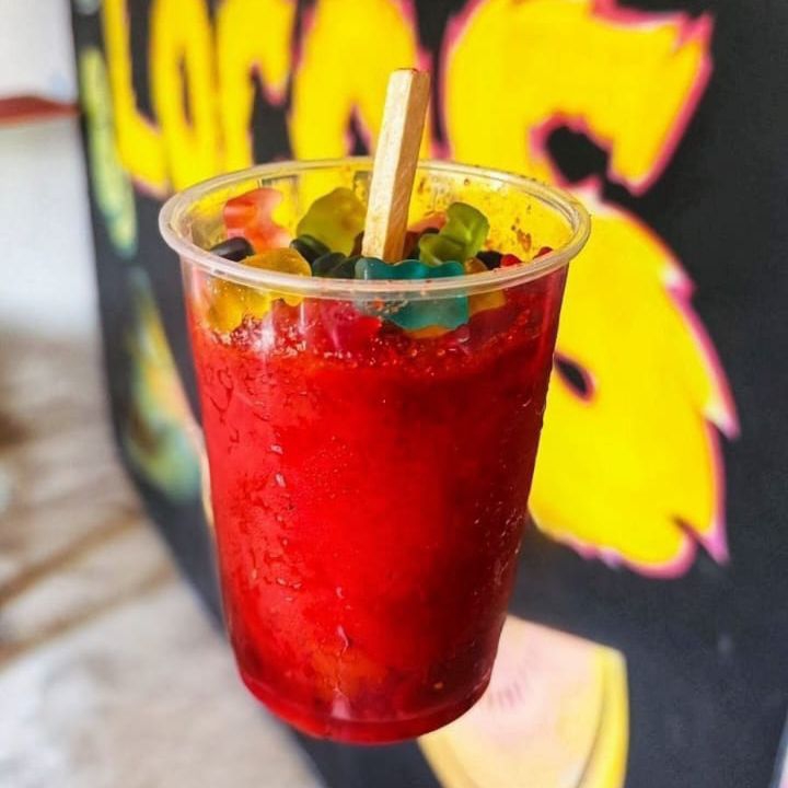 650 gr. aproximadamente de gomitas mixtas preparadas con chamoy y Miguelito.