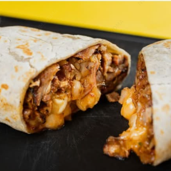 Lleva una doradita tortilla gigante burrera, frijoles, lechuga, carne molida con una sazón idéntica al del suadero, queso oaxaca, complementos. La imagen es 100 % de referencia.