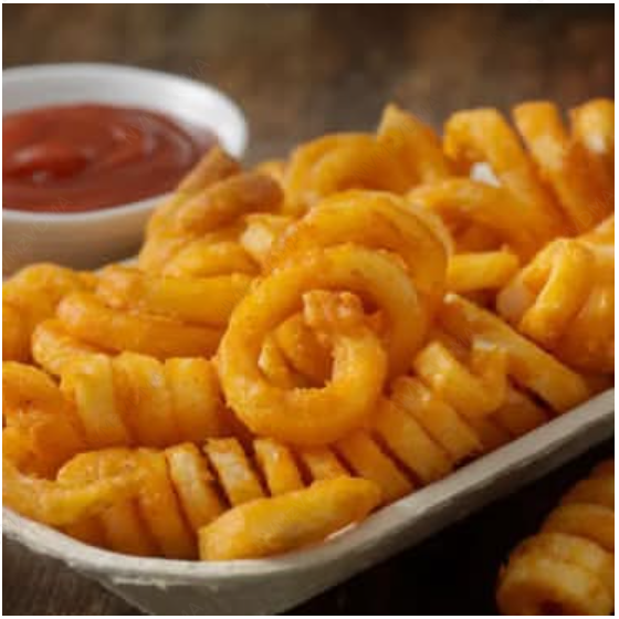 Deliciosa orden de papas a la francesa onduladas. Imagen de referencia.
