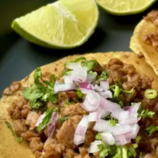 Tortilla de maíz tamaño normal recién calentada en comal, acompañada de carne molida con una excelente sazón para darle un sabor único a suadero, complementos y se recuerda que la imagen es solo de referencia.