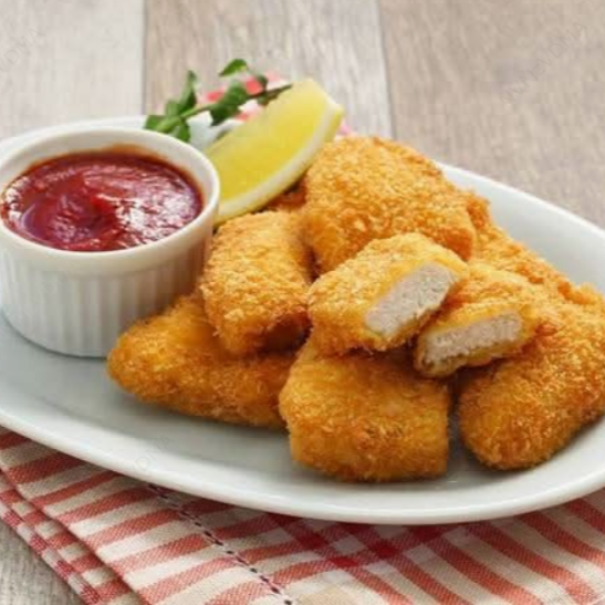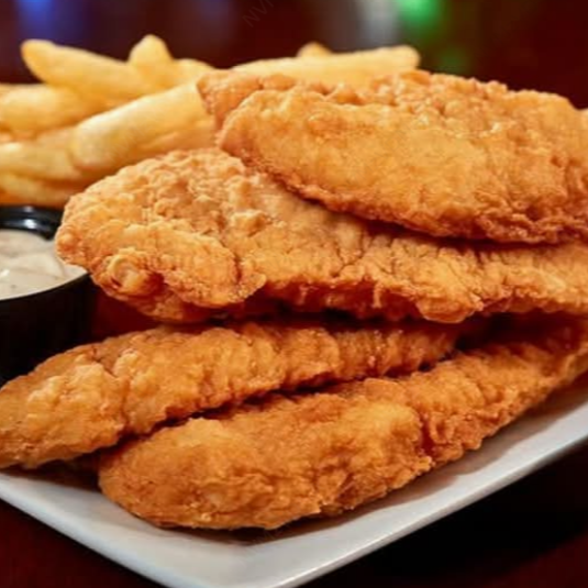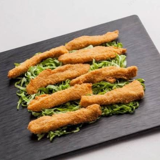 3 pza De tiras de pechuguitas de pollo empanizado. Imagen de referencia.