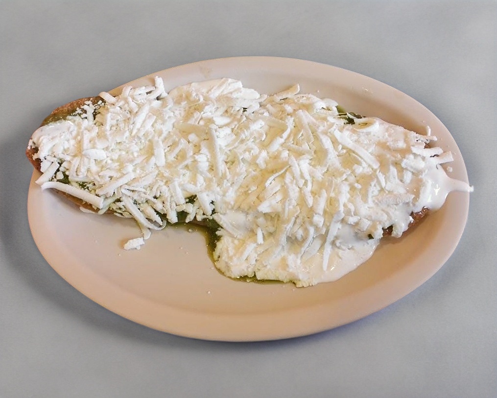 Frijoles, lechuga, crema, queso rallado longaniza.