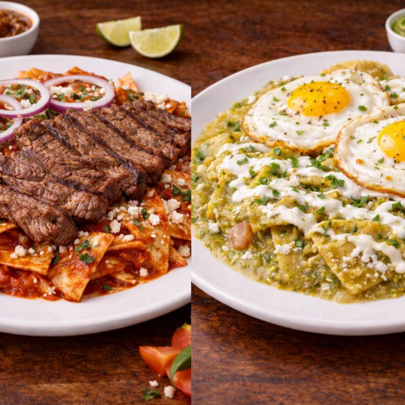 Chilaquiles Rojos (Bistec, Huevo O Pollo)*1 + Chilaquiles Verdes (Bistec, Huevo O Pollo)*1