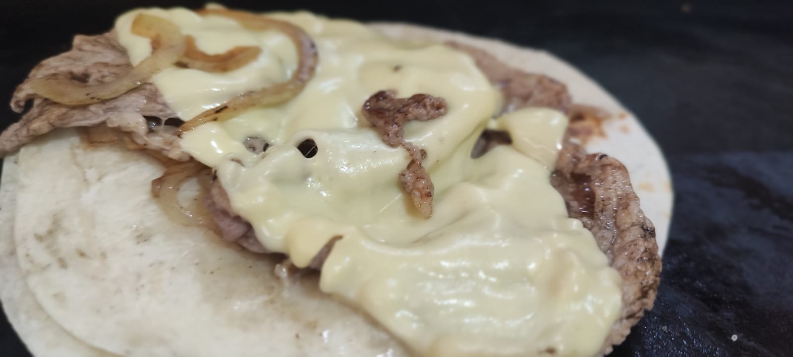 Taco de tortilla de harina y van con queso manchego