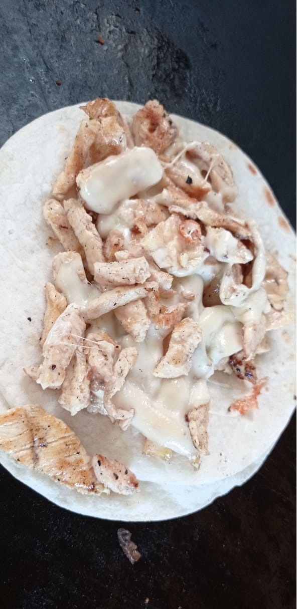 Generosa porcion de proteina con tortilla de harina y queso manchego
