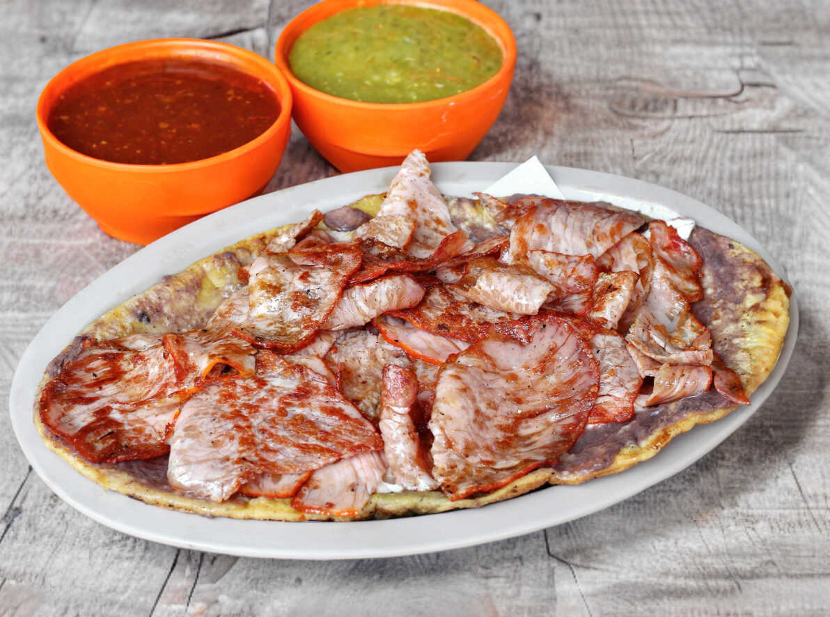 Huarache Suadero + Queka de Chicharrón