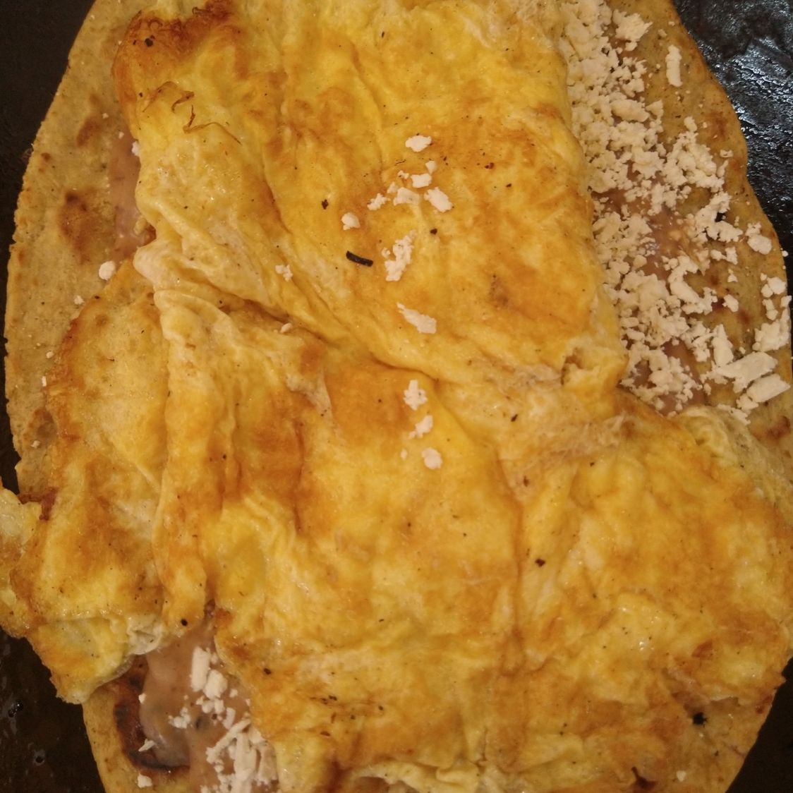 Acompañada de frijoles y queso rallado.
