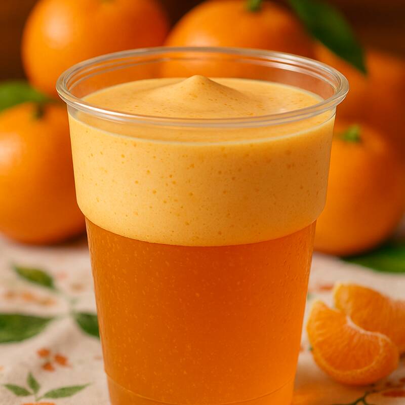 Gelatina elaborada con la receta de la casa, 2 capas una cremosa y otra clara sabor Mandarina. En presentacion individual 8oz.