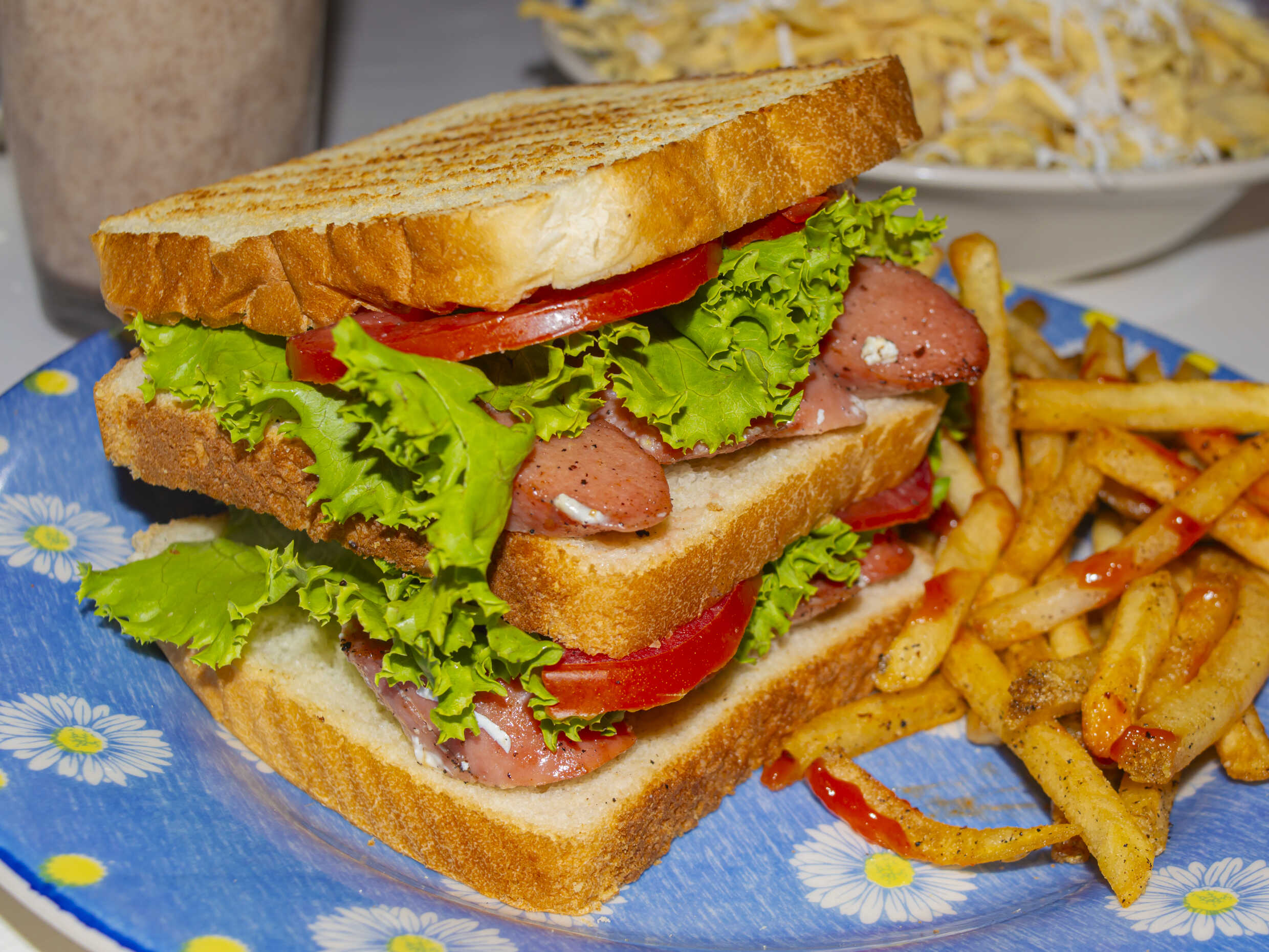 Torta sencilla jamón, queso, mayonesa, jitomate y aguacate