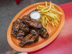 Incluye: 8 Alitas, 2 Hamburguesa y Papas