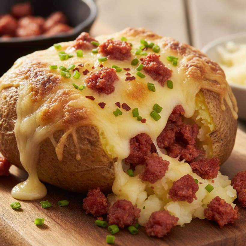 Papa al Horno "Maradona" ⚽🔥 Descripción: ¡Una joya en nuestro menú! Deliciosa papa horneada rellena con chistorra de primera calidad, doradita y llena de sabor, cubierta con una generosa capa de queso manchego gratinado. Acompañada con nuestra clásica salsa de chile morita y el aderezo especial de la casa. ¡Un golazo de sabor que tienes que probar!