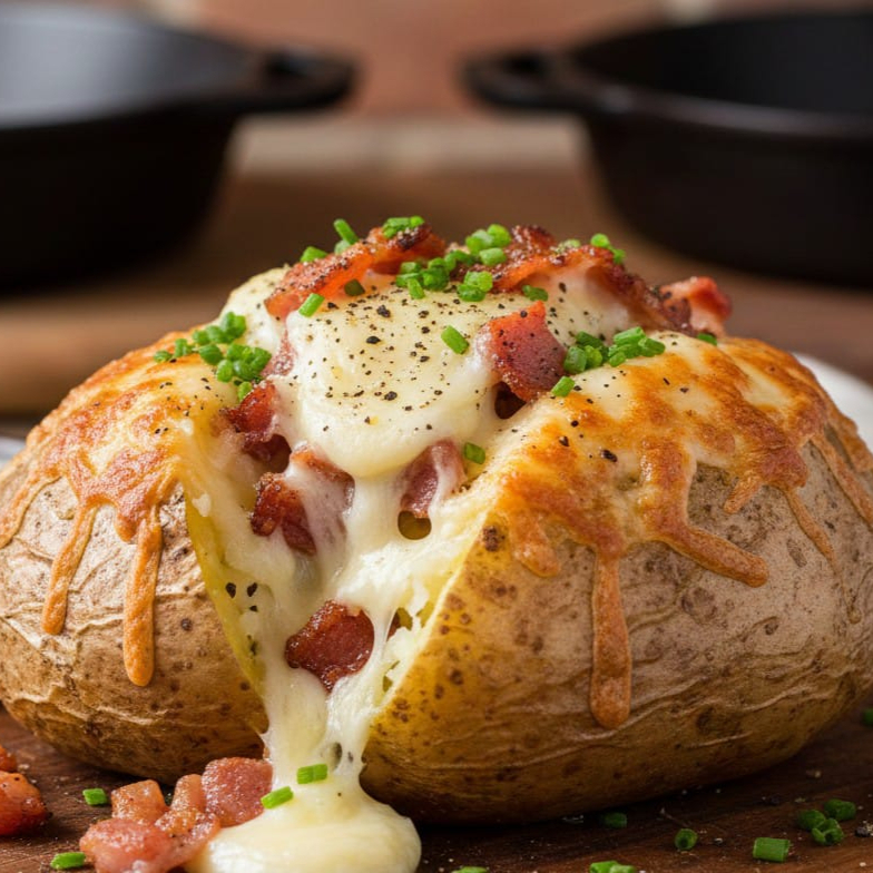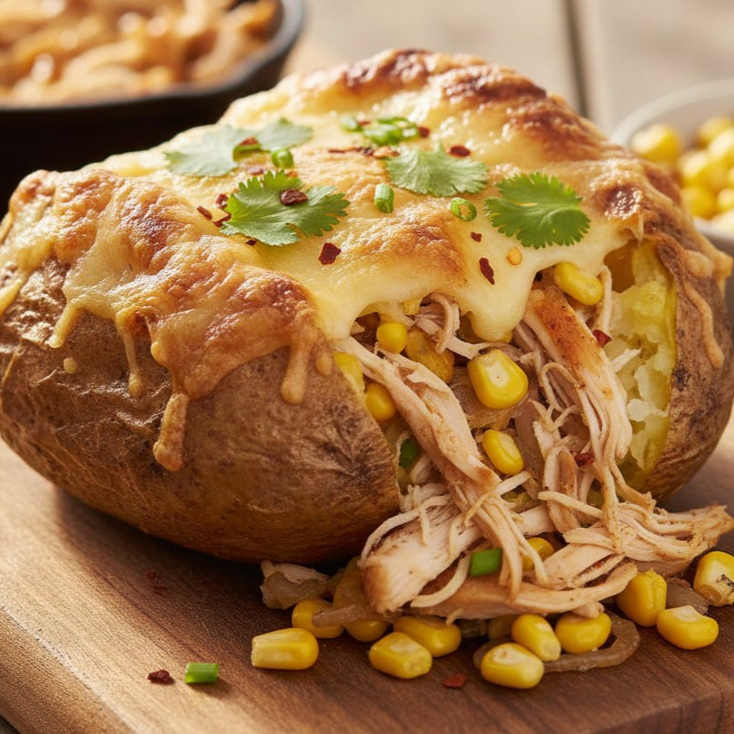 Papa al Horno "De la Granja" 🍗🌽 Descripción: ¡Sabor casero y reconfortante! Nuestra papa horneada está rellena de jugosa pechuga de pollo asada, granos de elote tierno y cebollita al punto. Todo va cubierto con una capa de queso manchego gratinado que te encantará. Se acompaña con nuestra salsa de chile morita y el toque especial del aderezo de la casa.