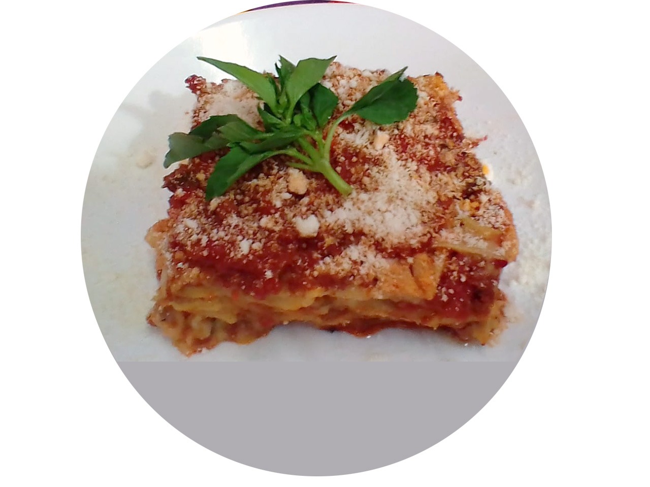 Lasaña al horno elaborada con salsa boloñesa, salsa bechamel, queso mozzarella y parmesano