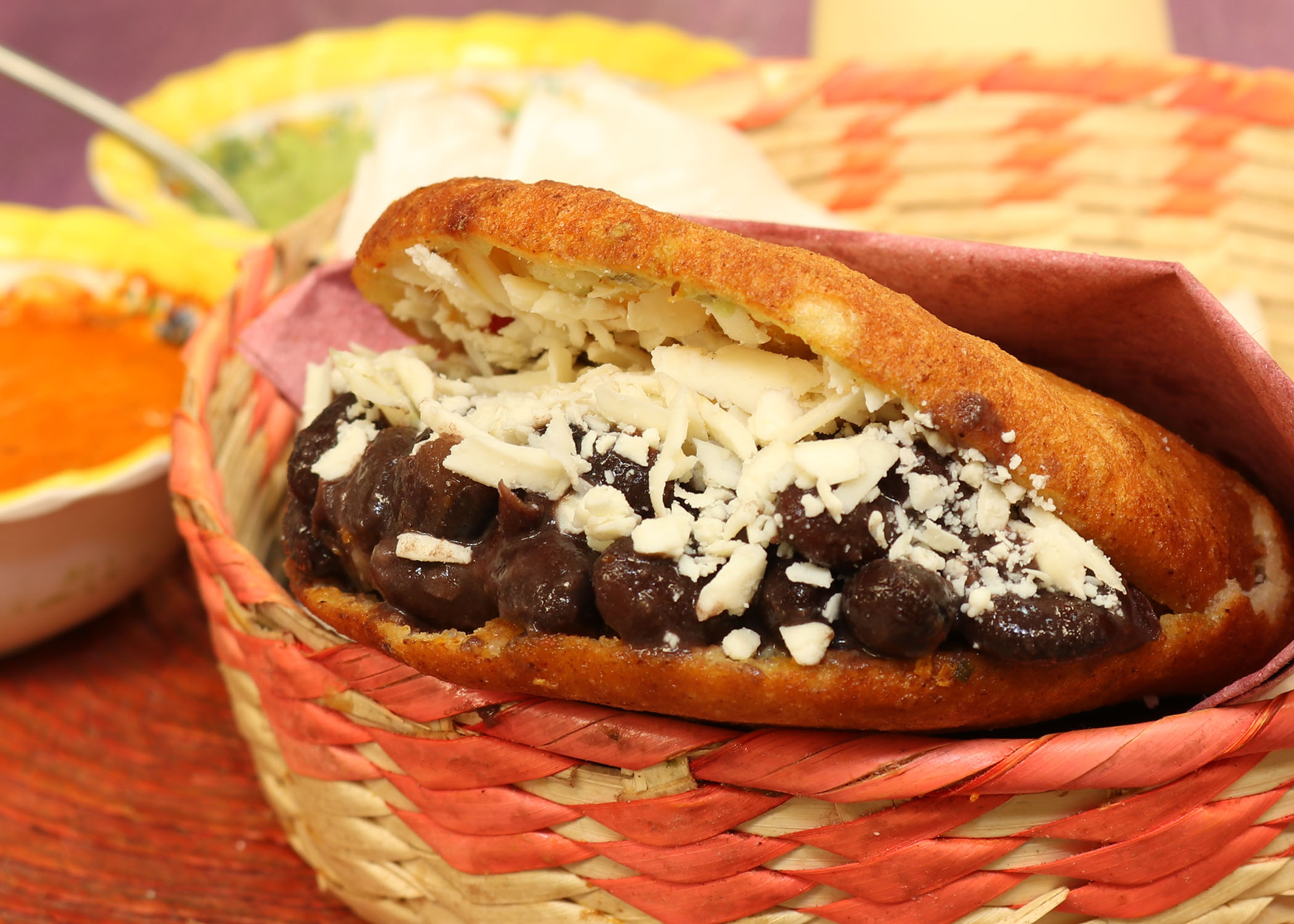 Empanada de harina de maíz rellena de frijol con queso.