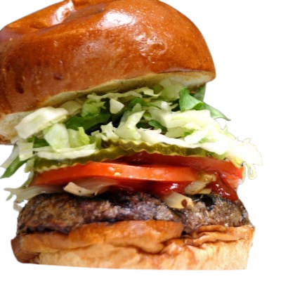 90 Gramos de carne de res con queso americano acompañada de lechuga, jitomate y cebolla además de mayonesa, mostaza y cátsup.
