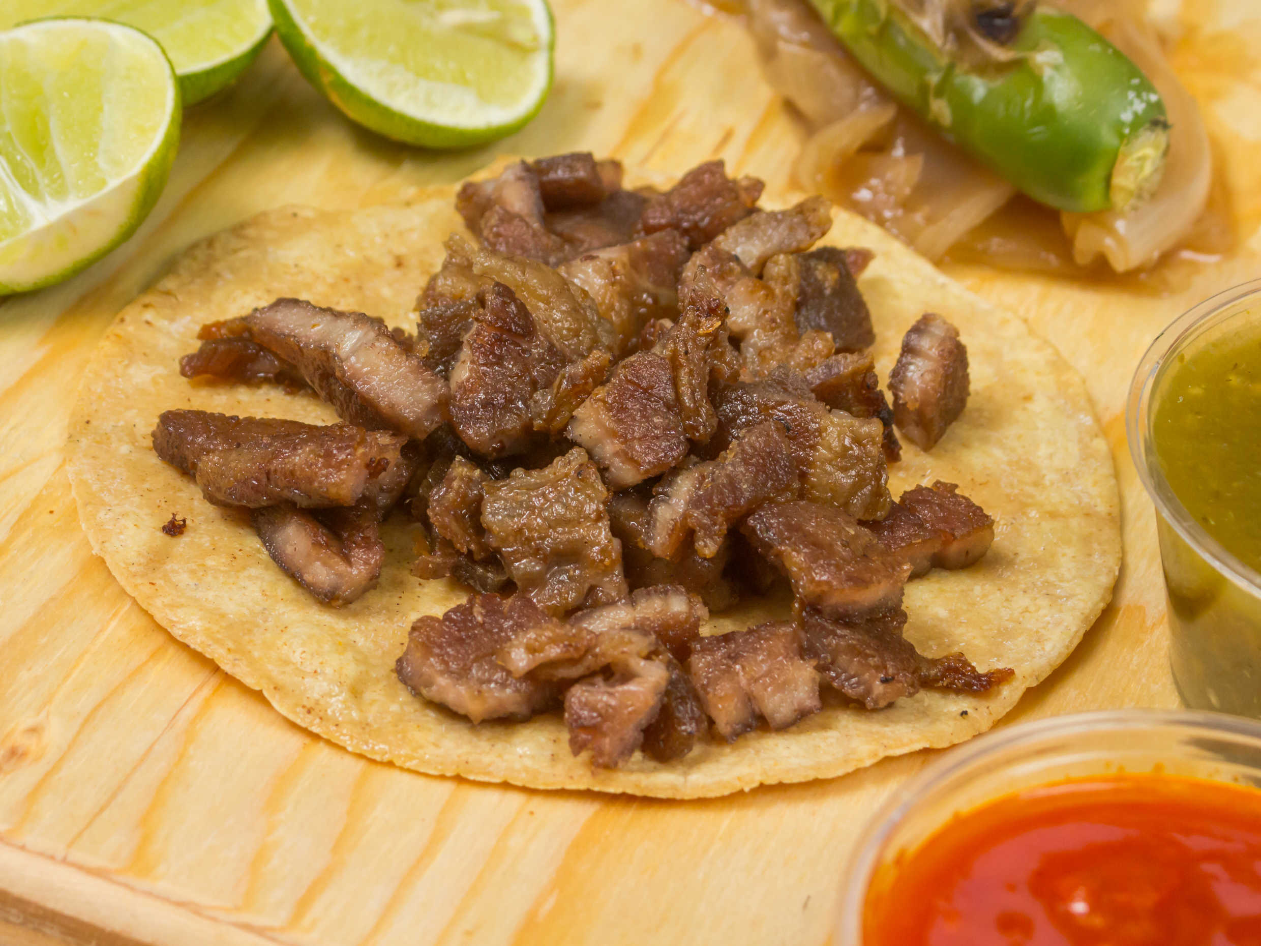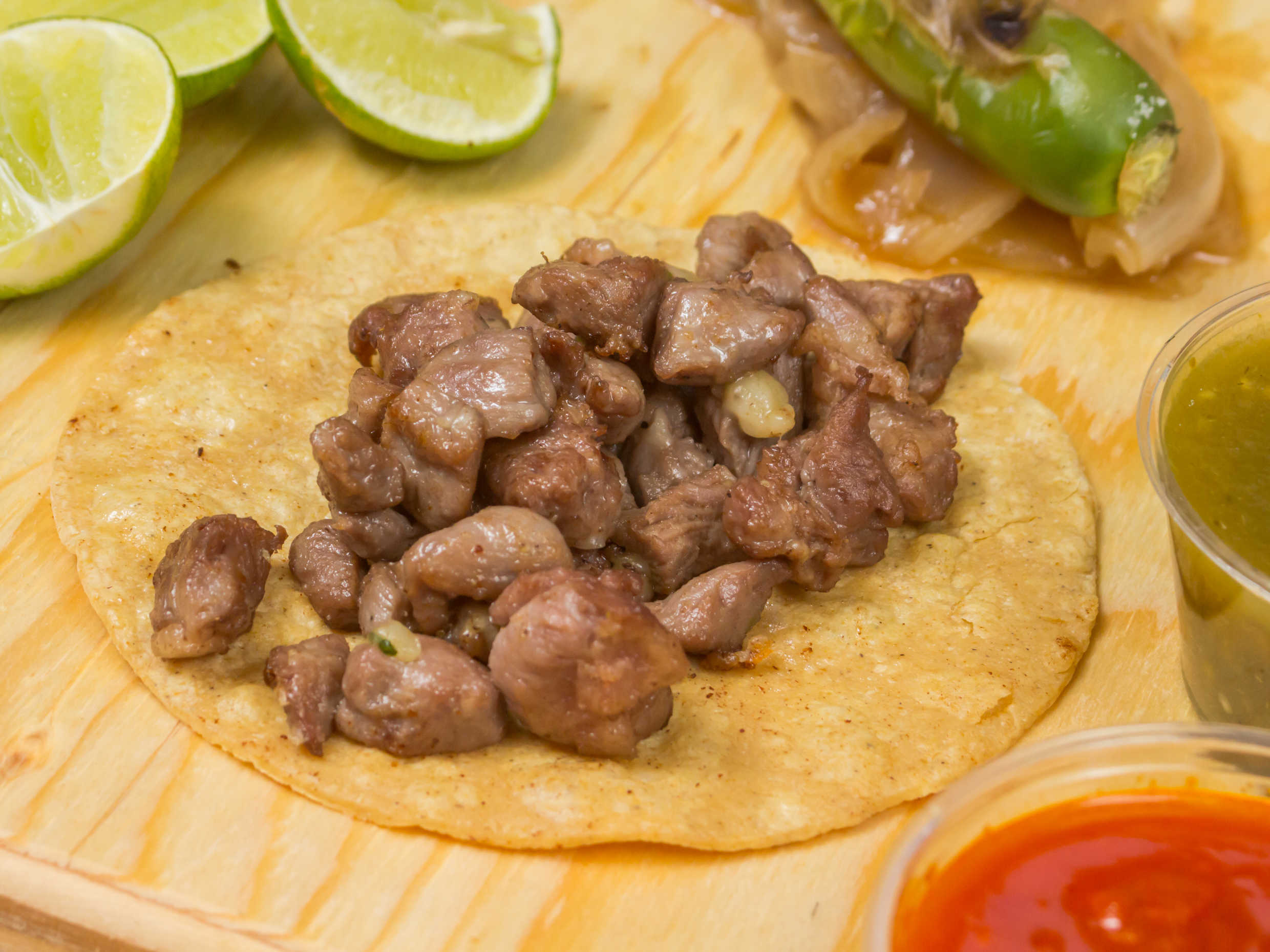 Delicioso Taco de Bistec, tierna carne de res sazonada a la perfección con tus ingredientes favoritos