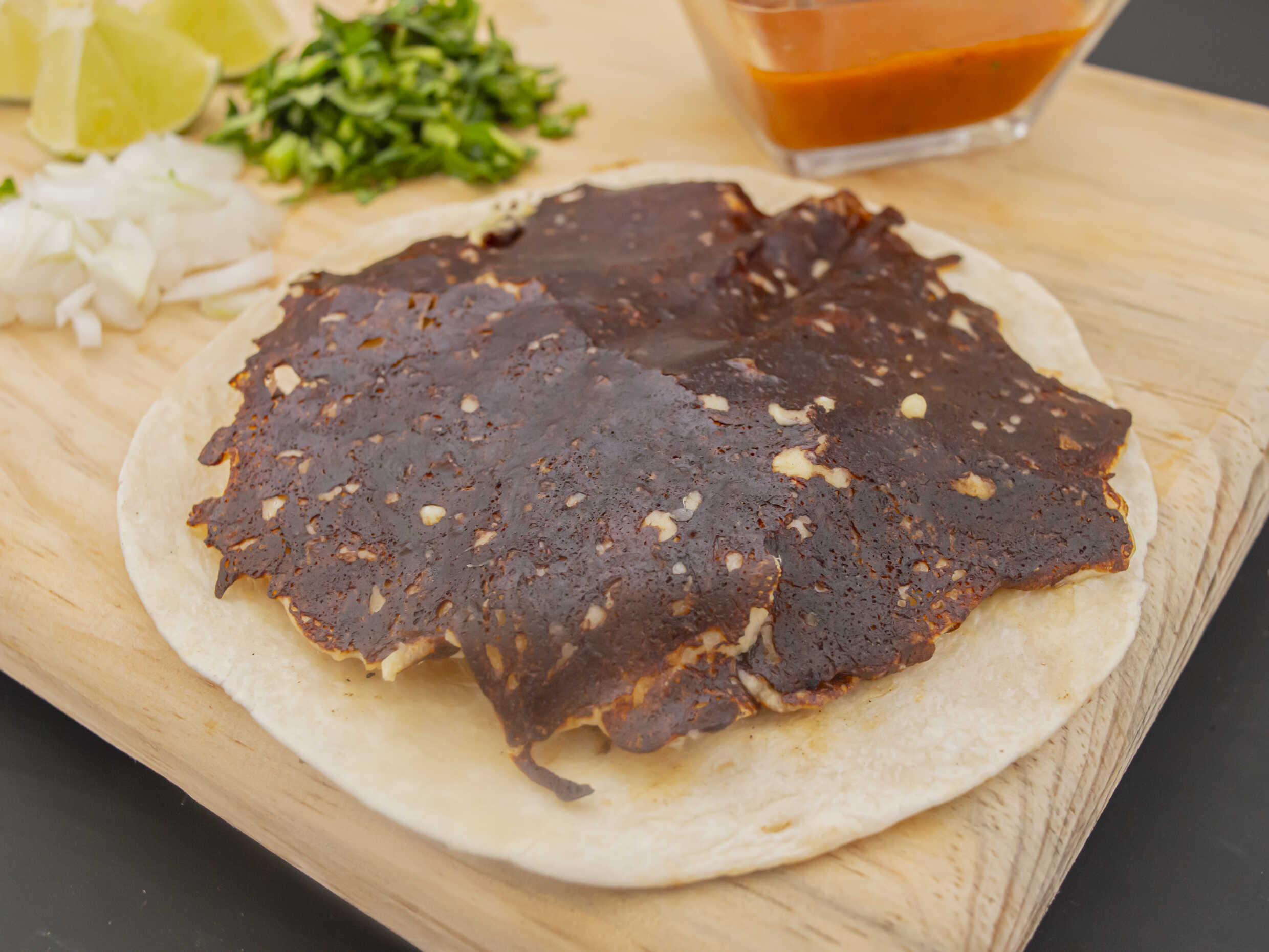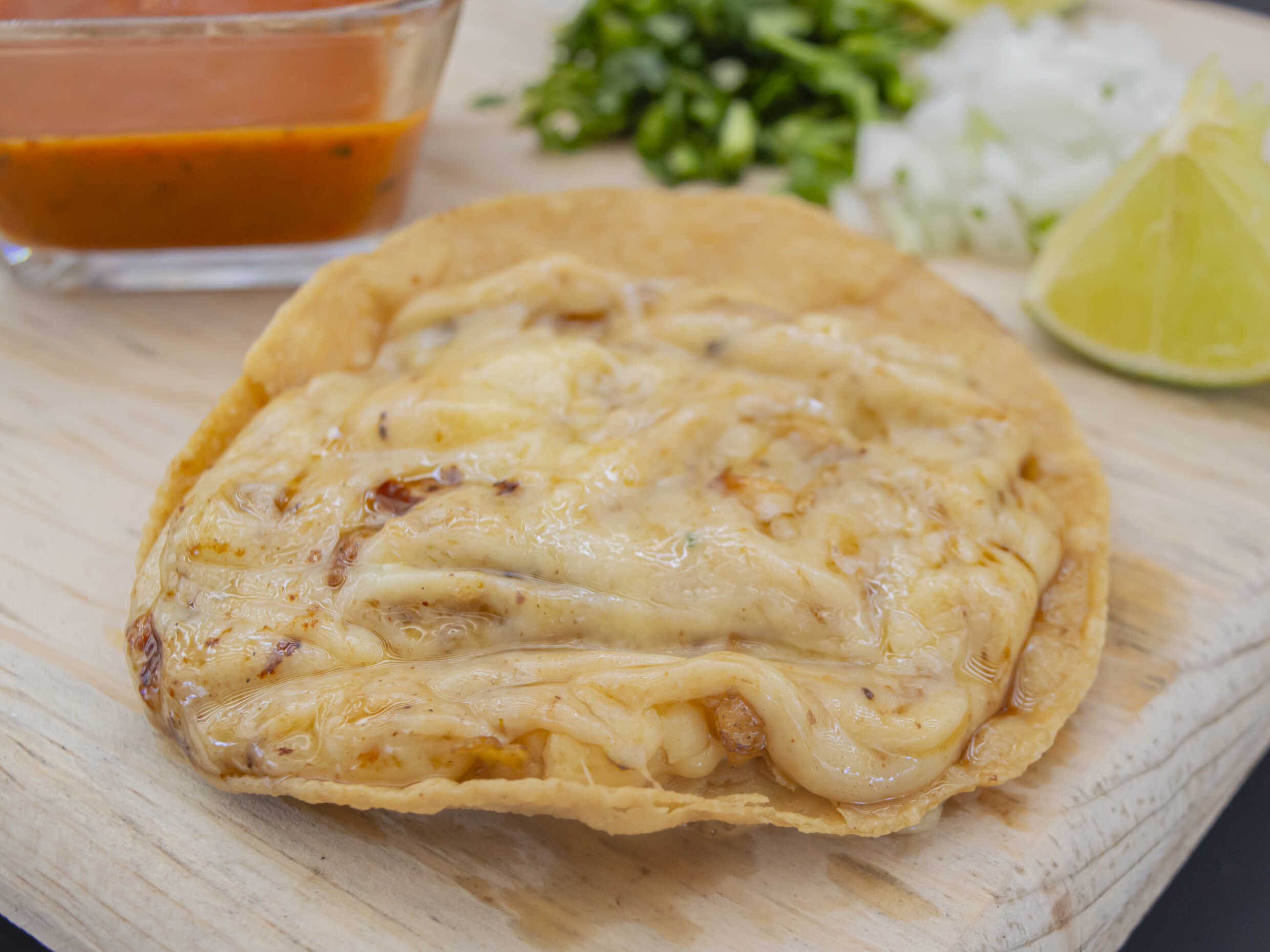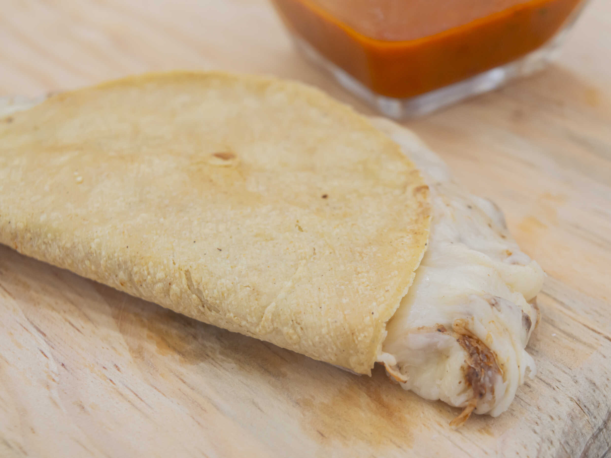 90 g de queso Oaxaca, colocado en una Tortilla de maíz