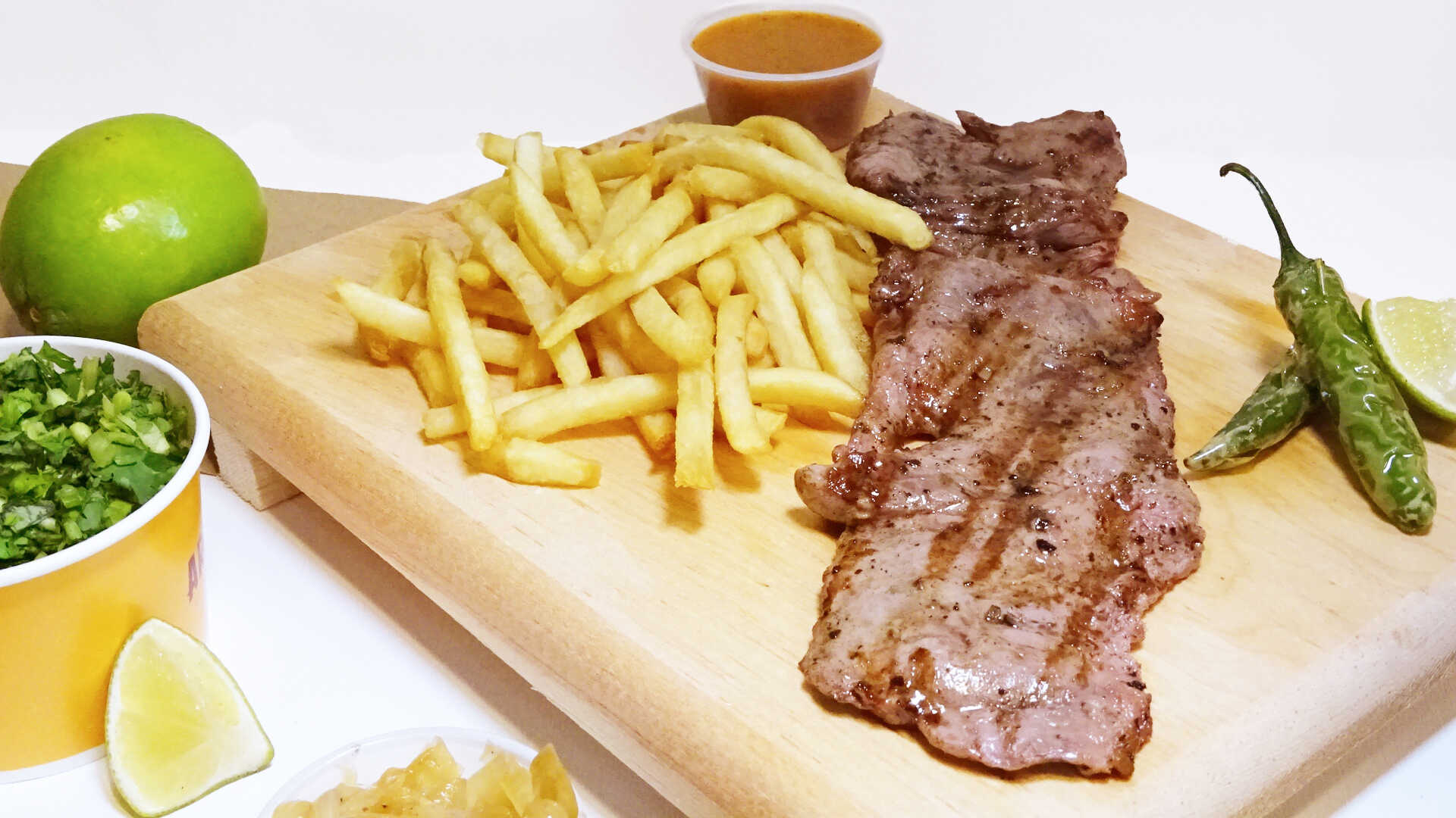 Disfruta de nuestro exquisito corte de arrachera, tierno y jugoso, acompañado de papas medianas (110 g) perfectamente sazonadas. Una combinación que deleitará tu paladar y te dejará completamente satisfecho.