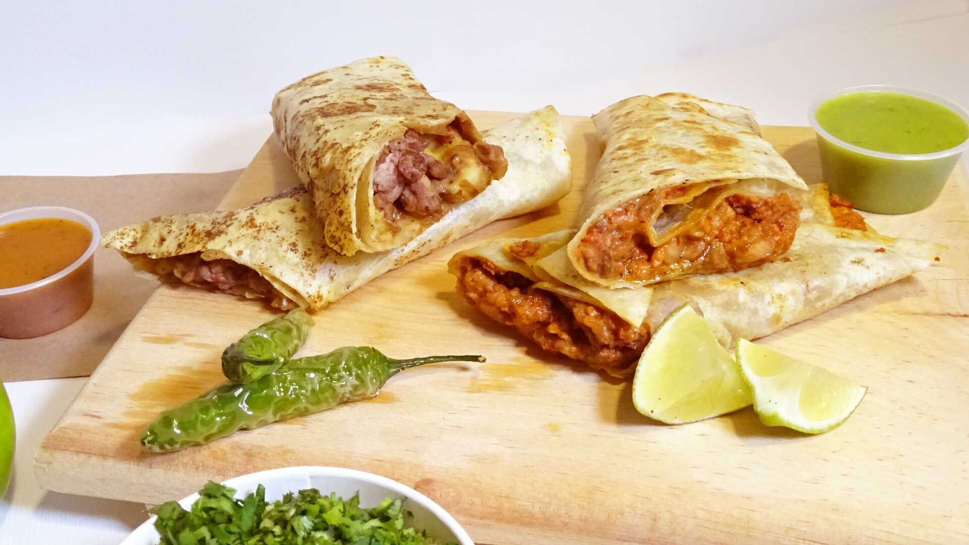 Disfruta de nuestra oferta especial: Dos deliciosos burritos a tu elección entre nuestra variedad de opciones, que incluyen el burrito chilango, el campechano y el norteño.