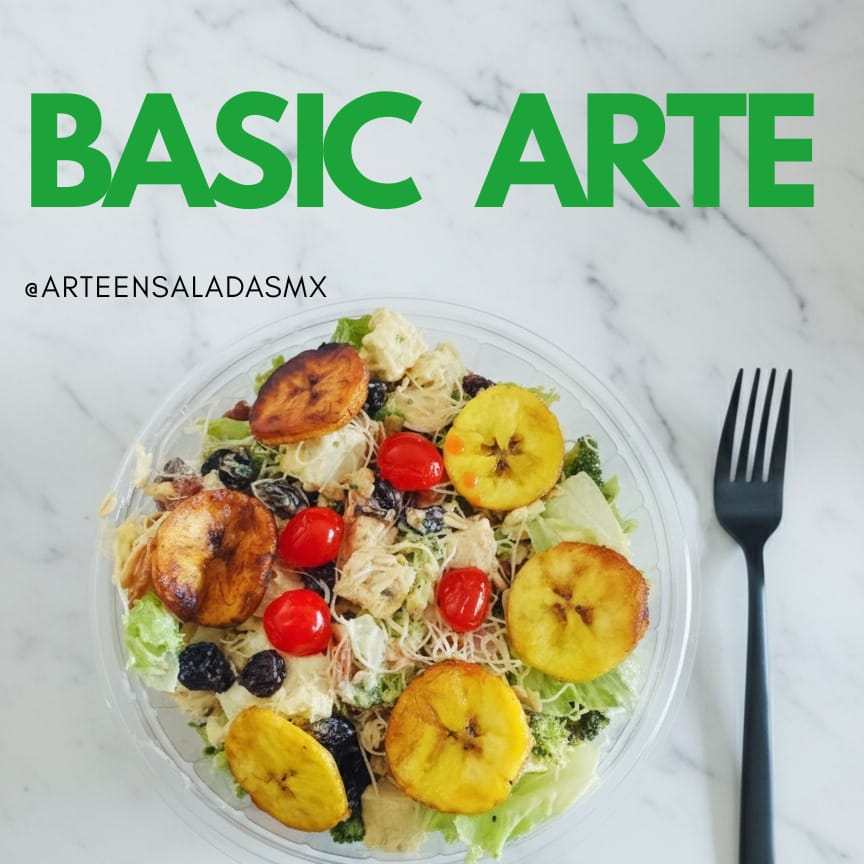 Ensalada Básic Arte Contiene Base de Lechuga 2 Proteínas,3 Vegetales o Fruta, 1 Crocante,1Aderezo