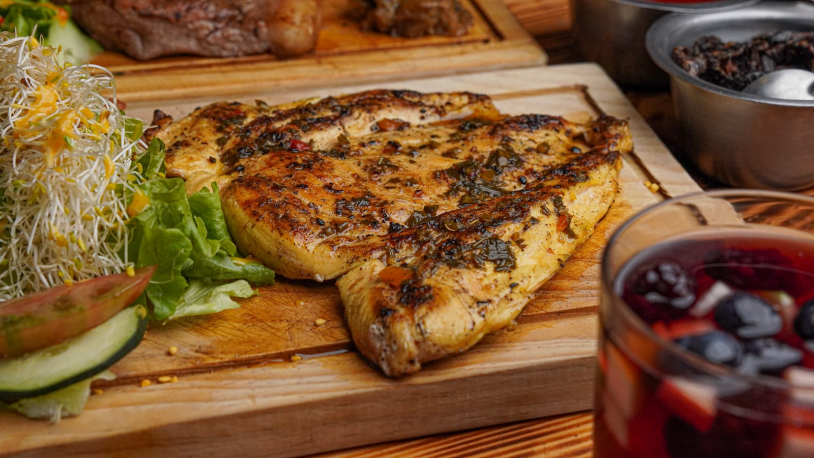 Chimichurri o a la miel mostaza, incluye doble porción de ensalada de la casa.