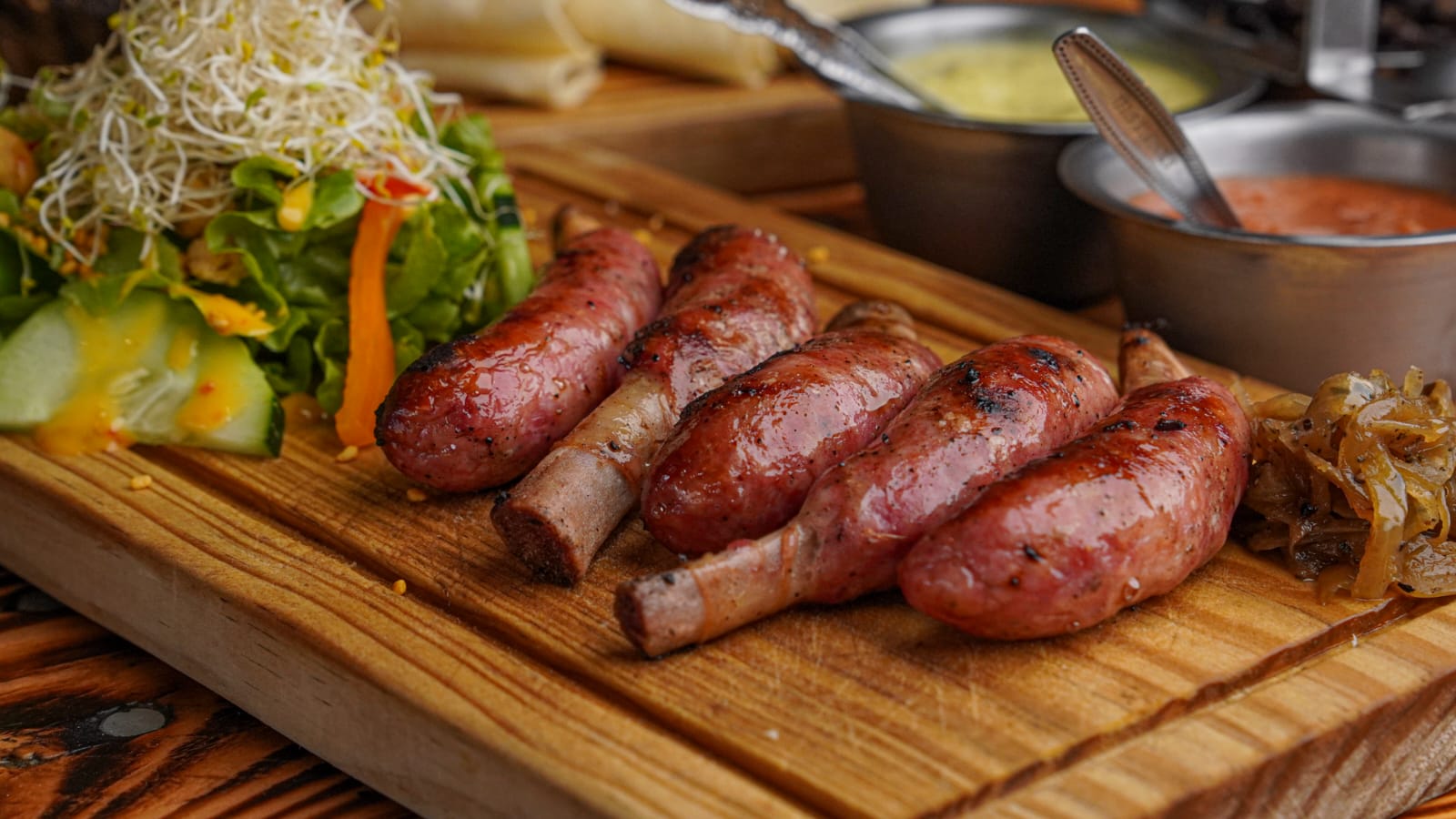 Acompañado con ensalada y cebolla caramelizada.