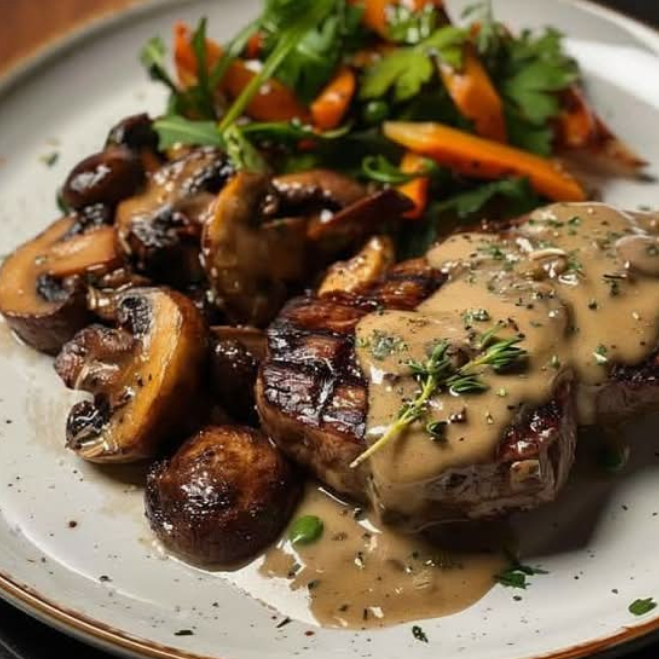 Bistec con Champiñones