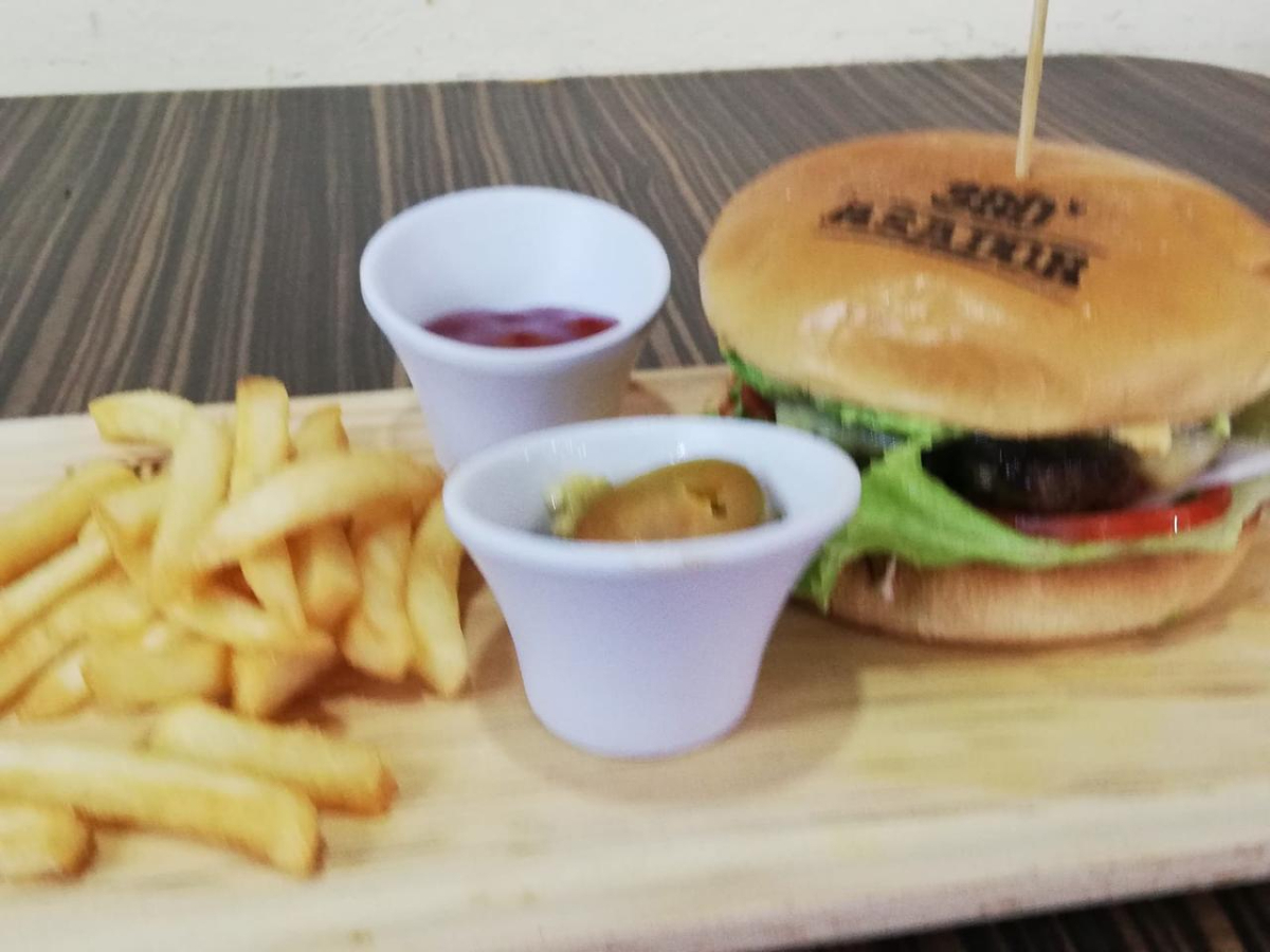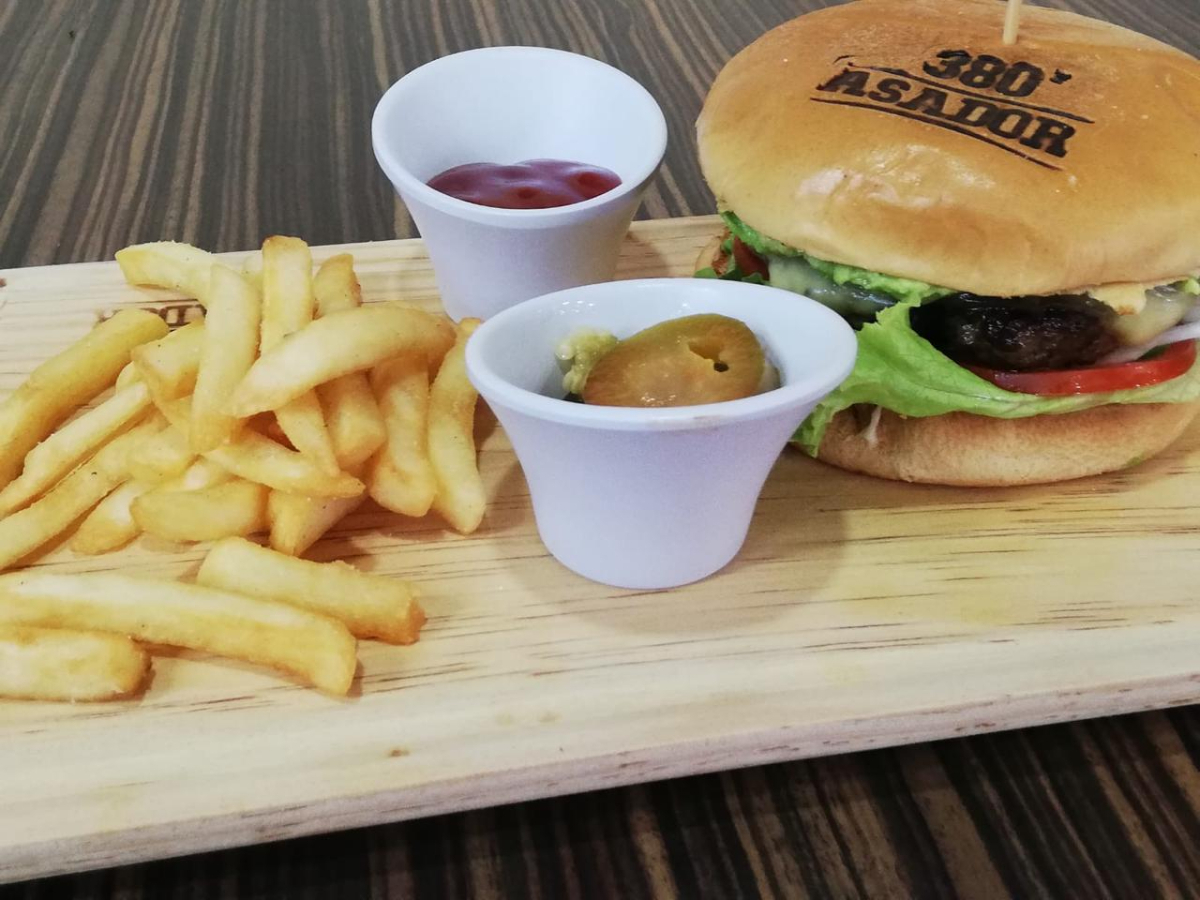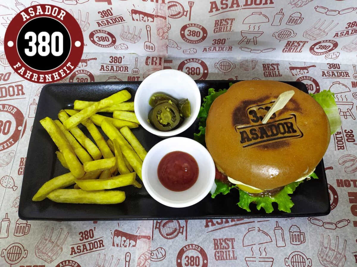 Preparado con carne Picaña, Pepinillos asados, Cebolla caramelizada y Queso Provolone acompañado de Papas a la Francesa